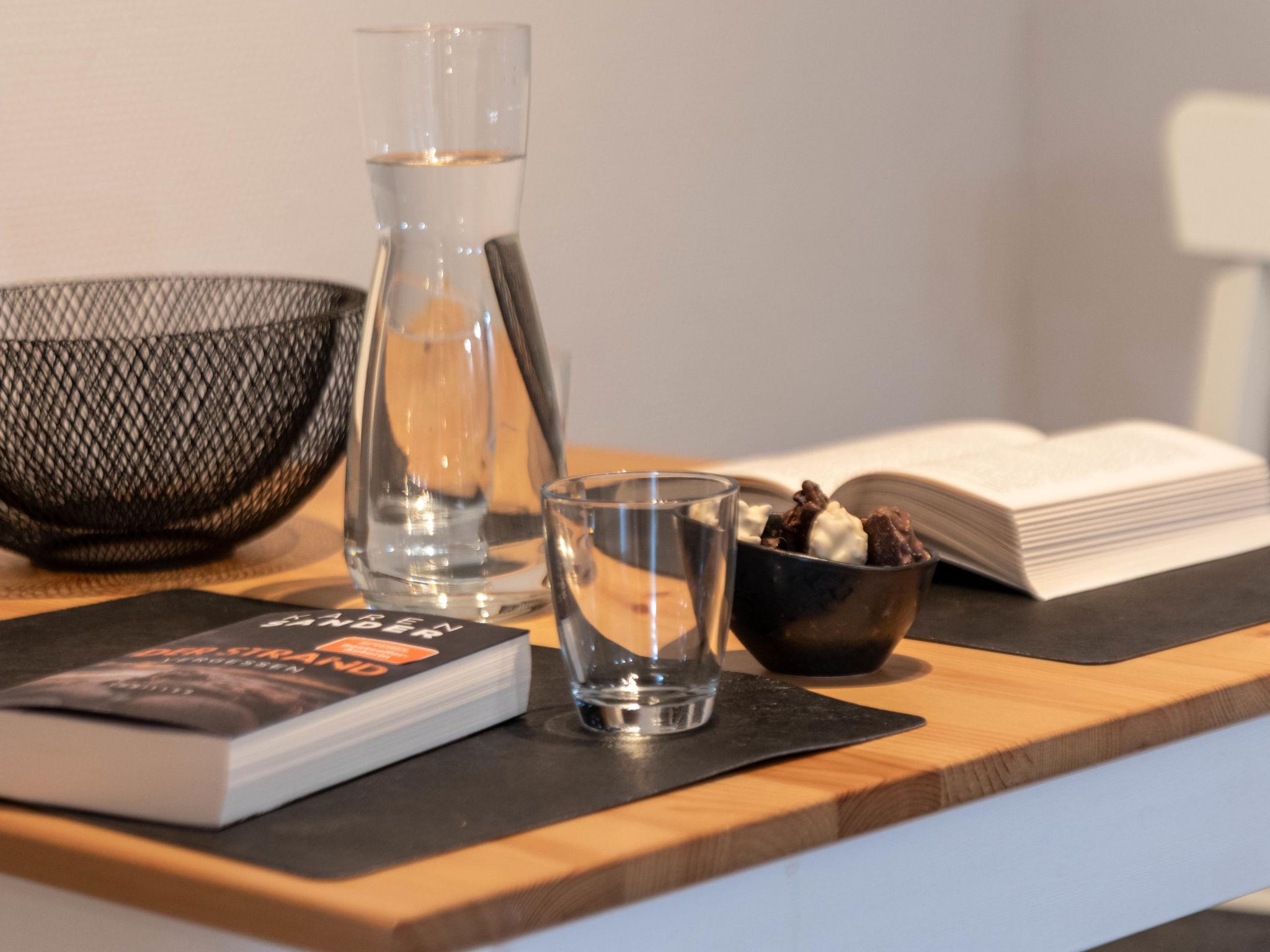 "Langeoog", 2-room apartment 40 m2, on the ground floor. Partly renovated in 2021, modern and tasteful furnishings: living/dining room 18 m2 with satellite TV (flat screen). 1 room 9 m2 with 1 double bed (2 x 90 cm, length 200 cm). Open kitchen (oven, 2 ceramic glass hob hotplates, toaster, kettle, electric coffee machine) with dining table. Shower/WC. Terrace 6 m2, lawn. Terrace furniture. Facilities: Internet (WiFi, free). Please note: not suitable for children under 6 years. Non-smokers only. Maximum occupancy: 2 people (baby or toddler as 3rd person is not possible). Terrace with beach chair.