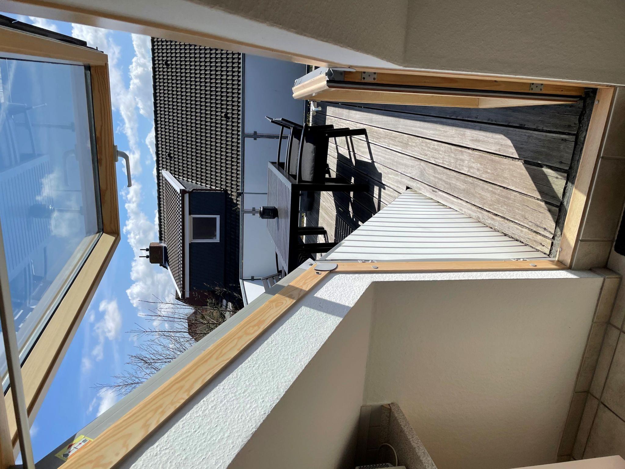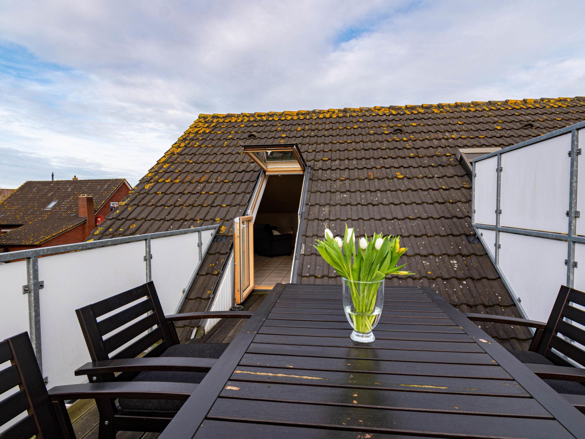 "Norderney", 2-room apartment 35 m2, on the top floor. Stylish furnishings: living/dining room 15 m2 with satellite TV (flat screen), hi-fi system. Exit to the balcony. 1 room 7 m2 with 1 double bed (2 x 90 cm, length 200 cm). Kitchenette (oven, 4 ceramic glass hob hotplates, toaster, kettle, microwave, electric coffee machine) with dining table. Shower/WC. Balcony 9 m2. Balcony furniture. Facilities: children's high chair (extra). Please note: non-smokers only. Maximum 1 pet/ dog allowed. Smoke alarm. The very small double room and the small bathroom are not suitable for elderly or mobility-impaired people.
