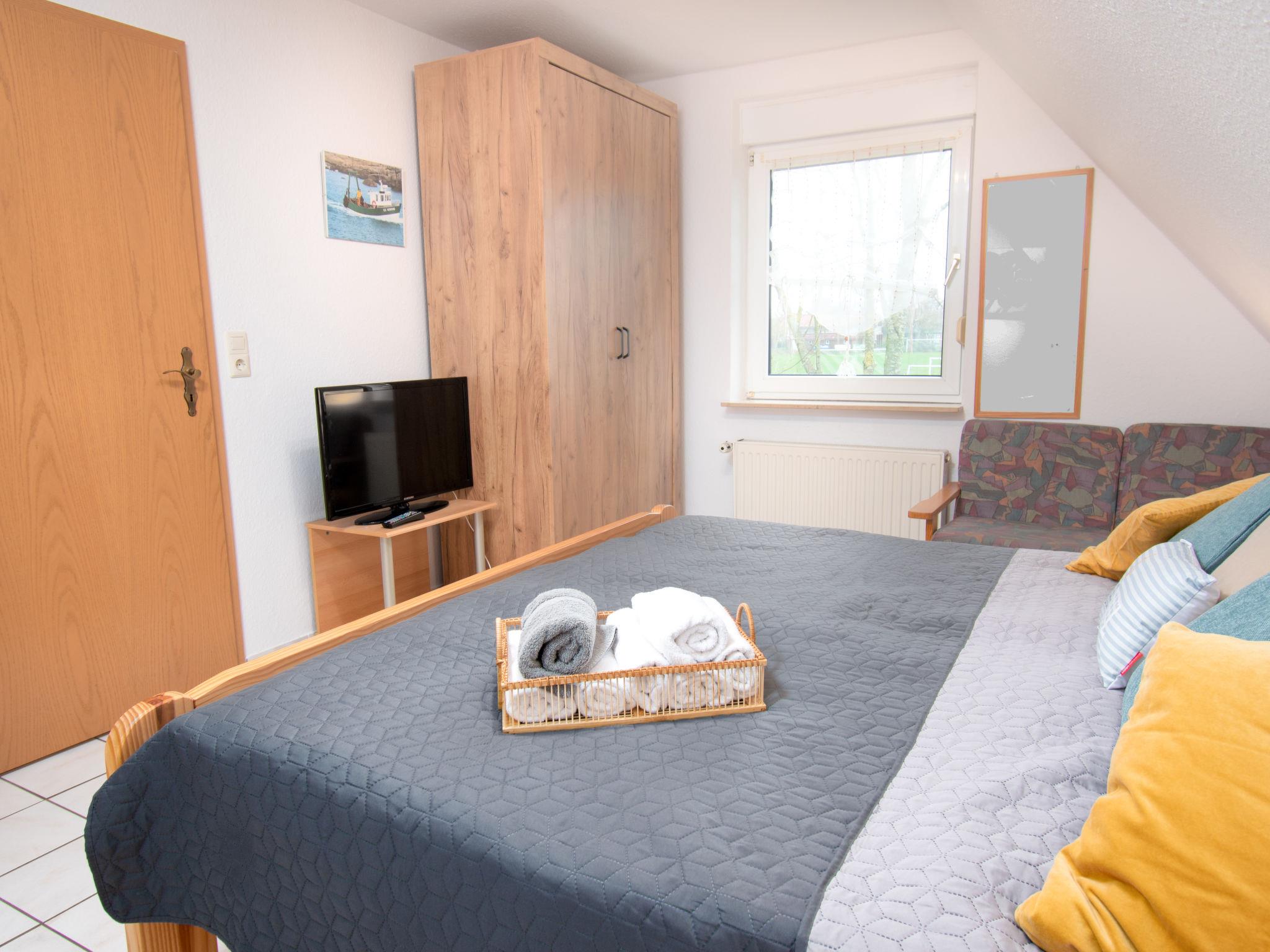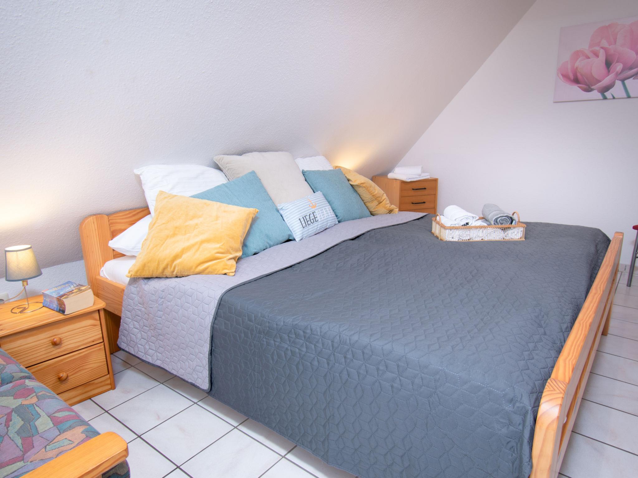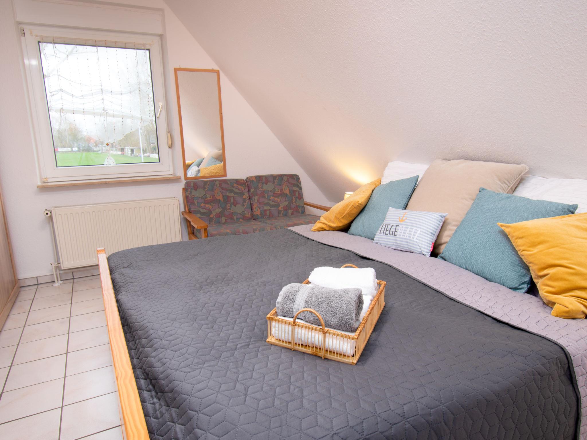"Robbe", 4-room terraced house 80 m2 on 3 levels, on the ground floor. Beautiful and tasteful furnishings: living/dining room with satellite TV (flat screen), hi-fi system. Kitchenette (oven, 4 ceramic glass hob hotplates, microwave, electric coffee machine). Sep. WC. Upper floor: 1 room with 1 double bed (2 x 90 cm, length 200 cm). 1 room with sloping ceilings with 2 beds (90 cm, length 200 cm). Shower/WC. Top floor: 1 double bedroom with sloping ceilings with 2 beds (90 cm, length 200 cm). Terrace 8 m2, lawn. Terrace furniture. Facilities: children's high chair (extra). Internet (WiFi, free). Please note: non-smoking house. Maximum 1 small pet/ dog allowed. Smoke alarm.