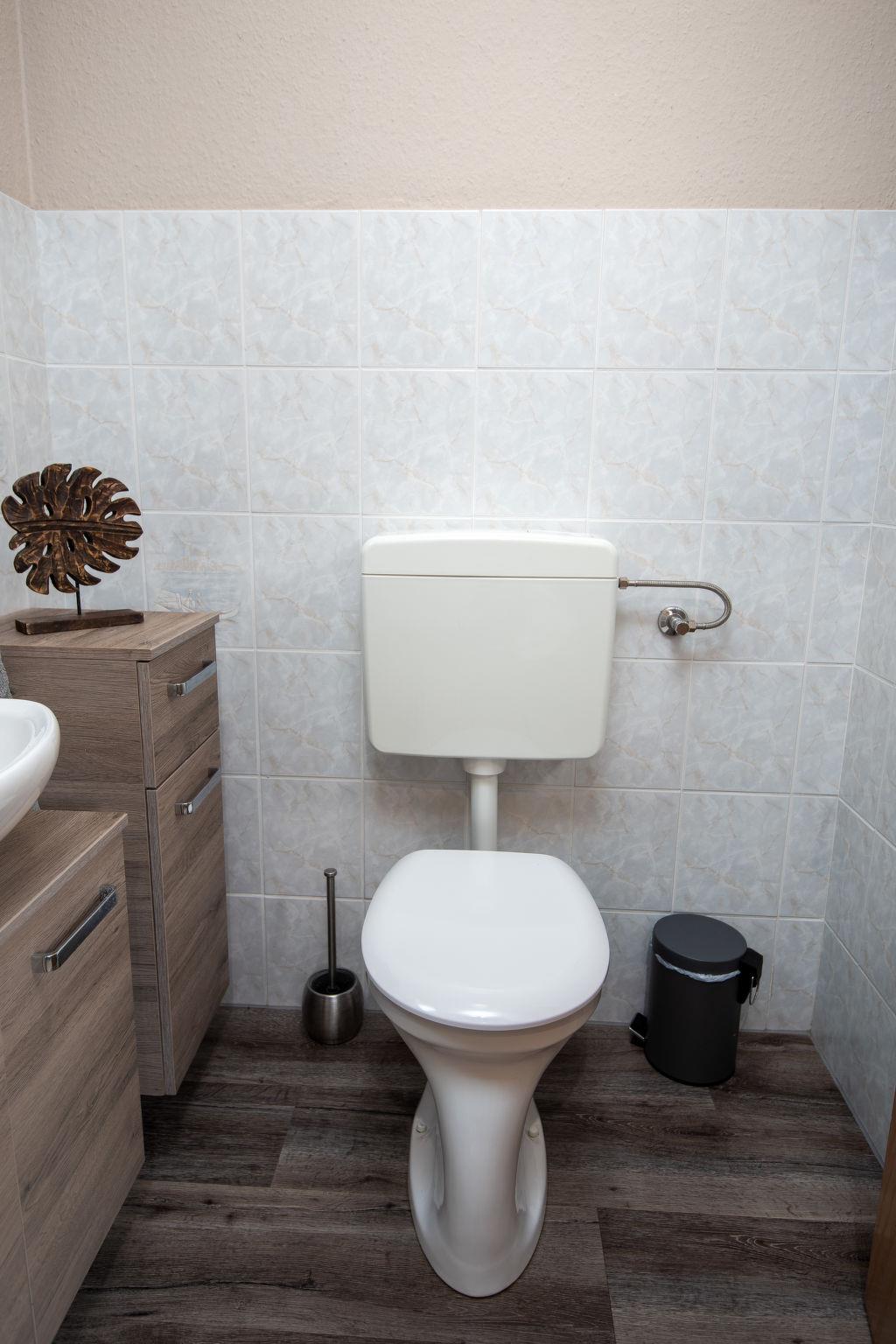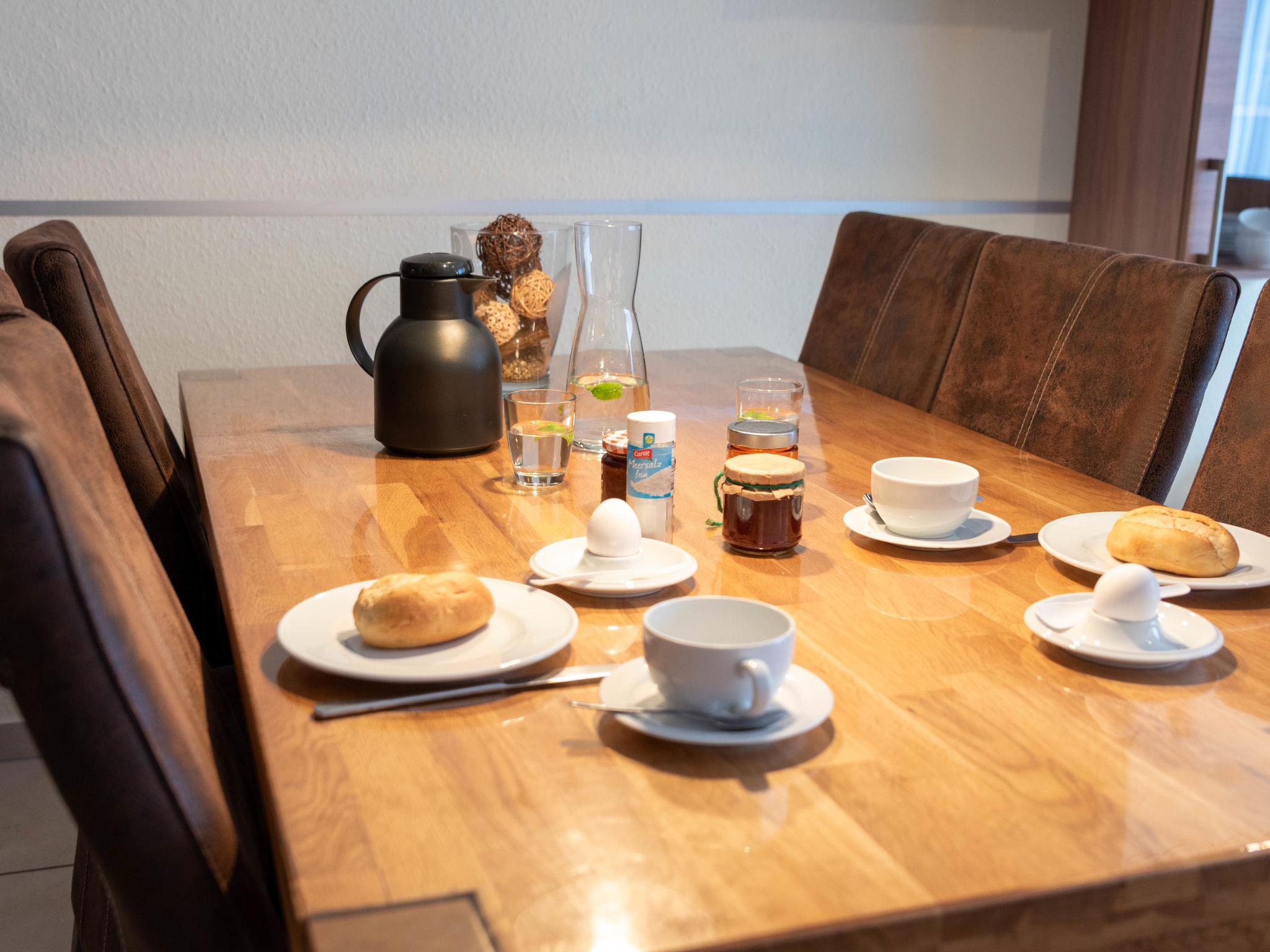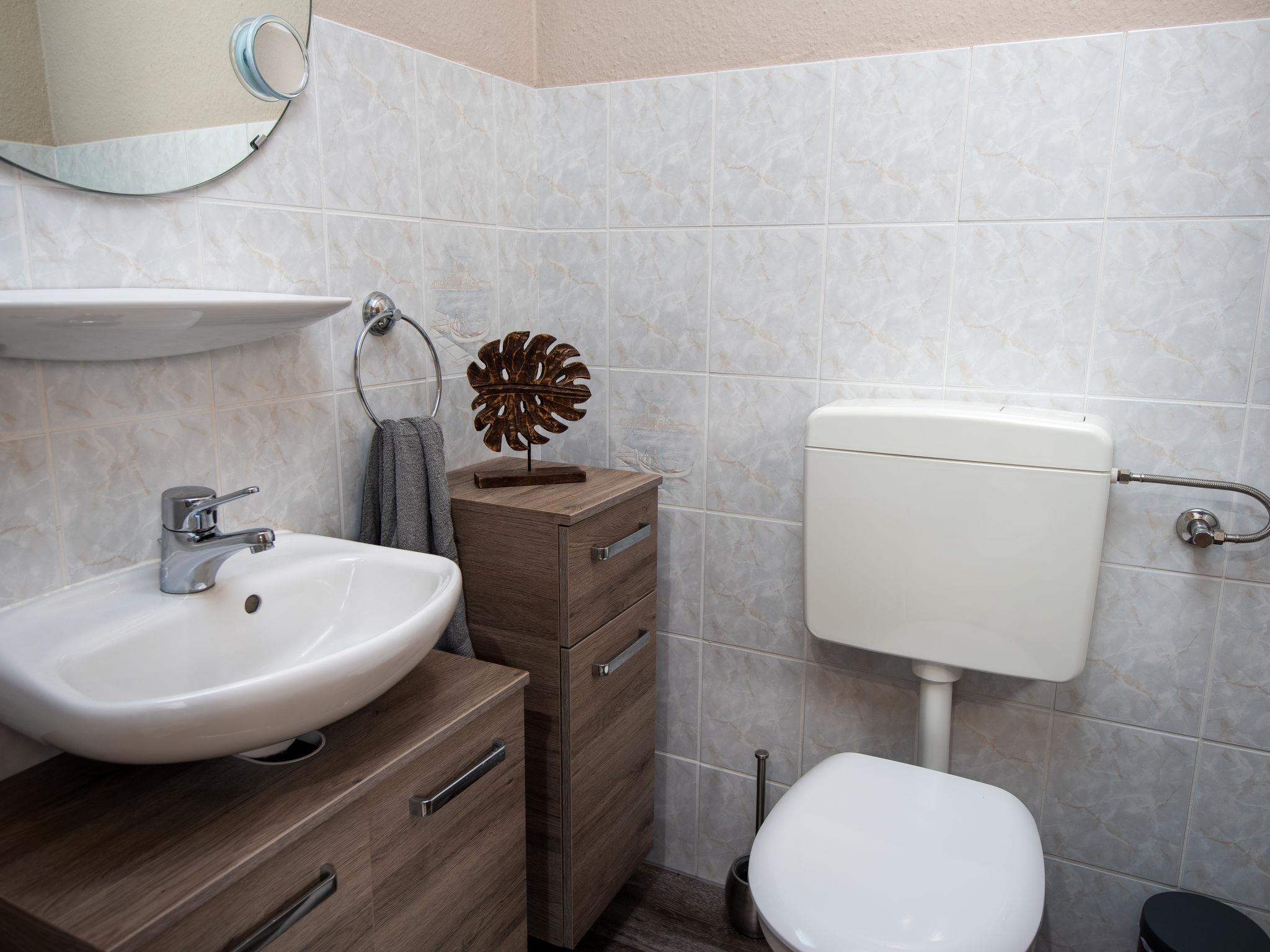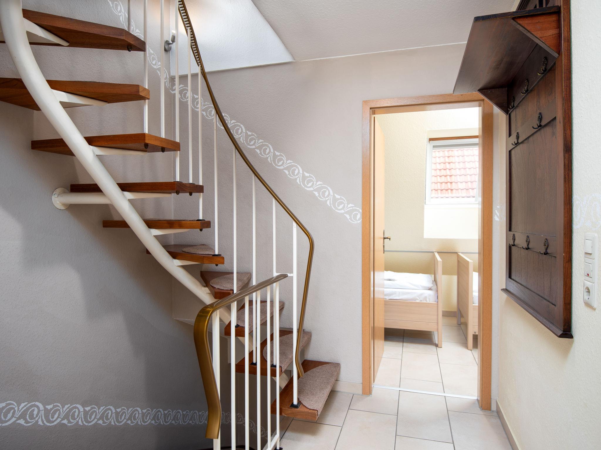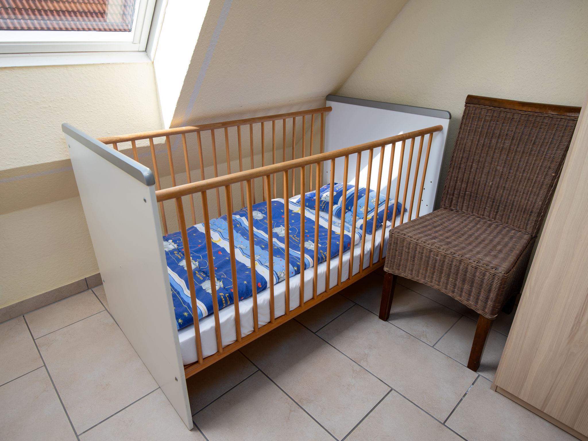 "Storchennest", 4-room terraced house 80 m2 on 3 levels, on the ground floor. Modern and tasteful furnishings: living/dining room 25 m2 with digital TV, flat screen and hi-fi system. Exit to the terrace. Open kitchen (oven, dishwasher, 4 ceramic glass hob hotplates, toaster, kettle, microwave, electric coffee machine, Capsules for coffee machine (Senseo) extra) with dining table. Sep. WC. Upper floor: 1 room 13 m2 with 1 double bed (2 x 90 cm, length 200 cm). 1 room 7 m2, with sloping ceilings with 2 beds (90 cm, length 200 cm). Shower/WC. Top floor: 1 room 8 m2, with sloping ceilings with 2 beds (90 cm, length 200 cm), hi-fi system. Terrace 10 m2. Terrace furniture. Facilities: iron, children's high chair (extra). Internet (WiFi, free). Please note: non-smoking house. Maximum 1 small pet/ dog allowed. Smoke alarm.