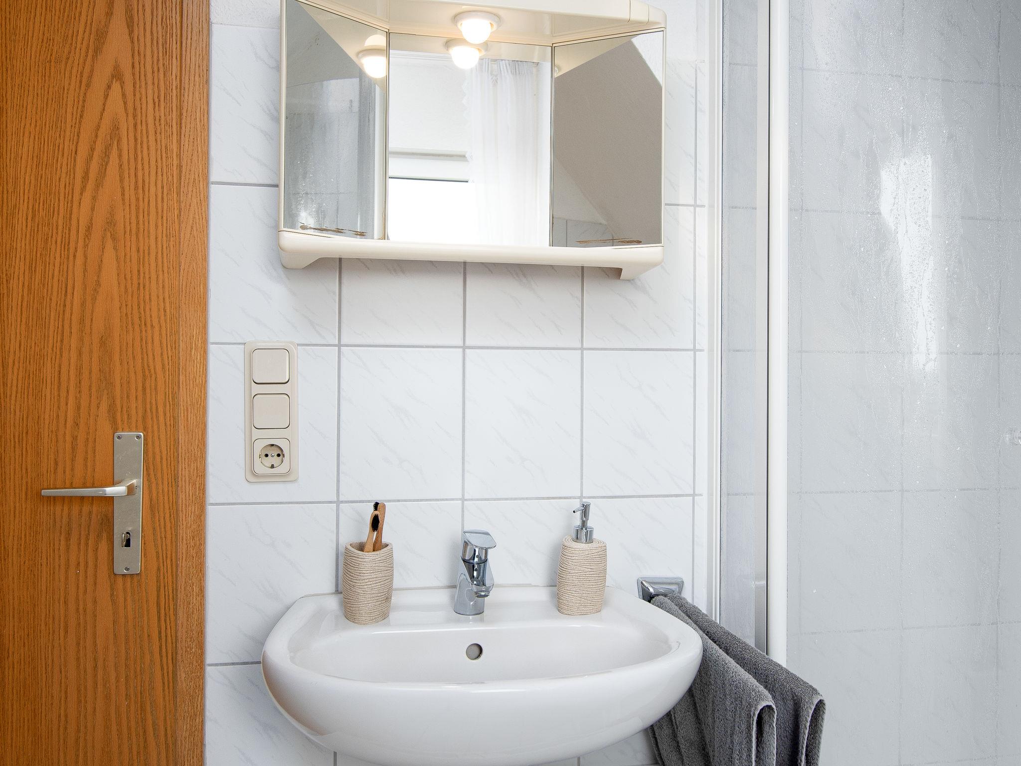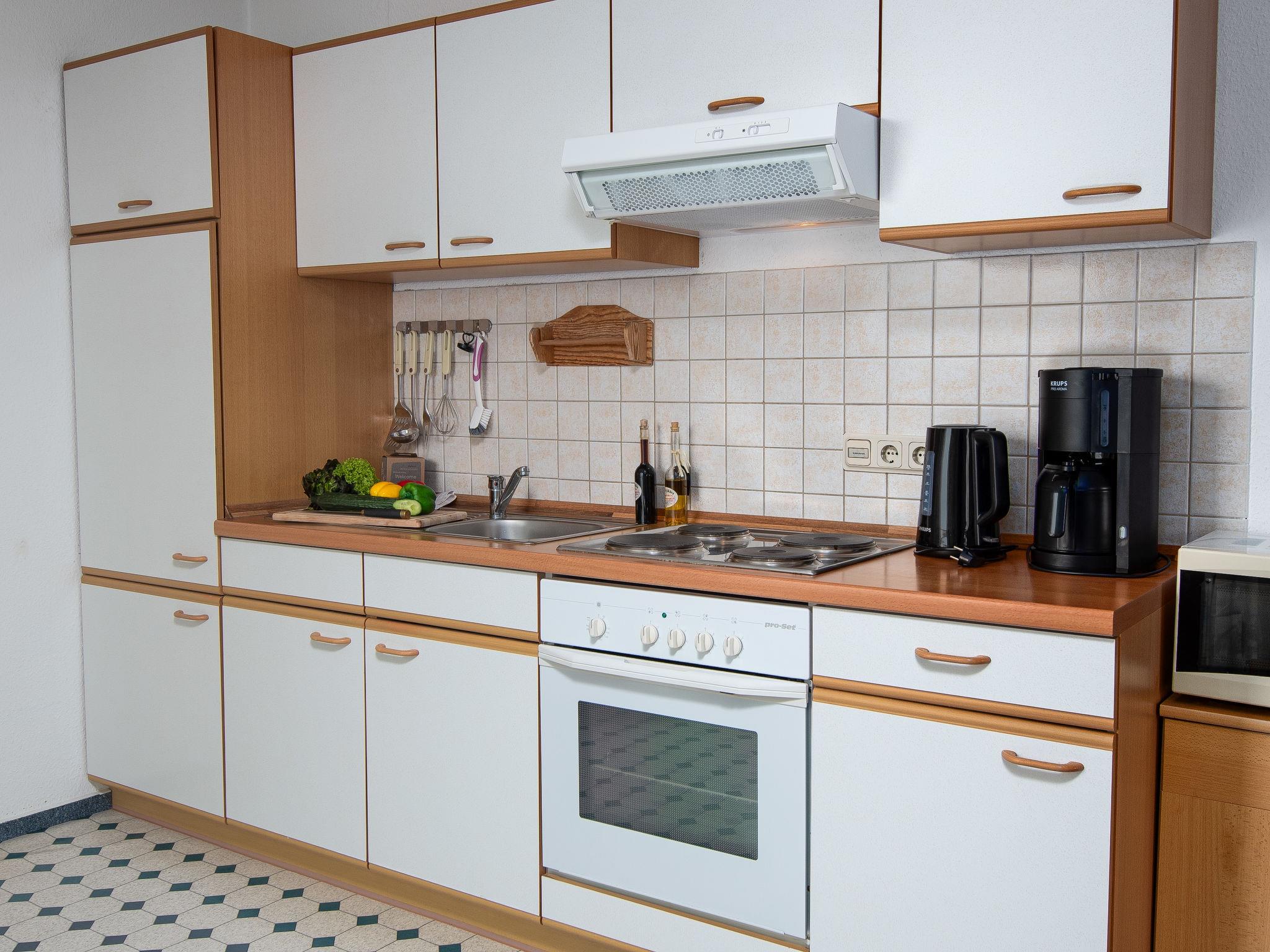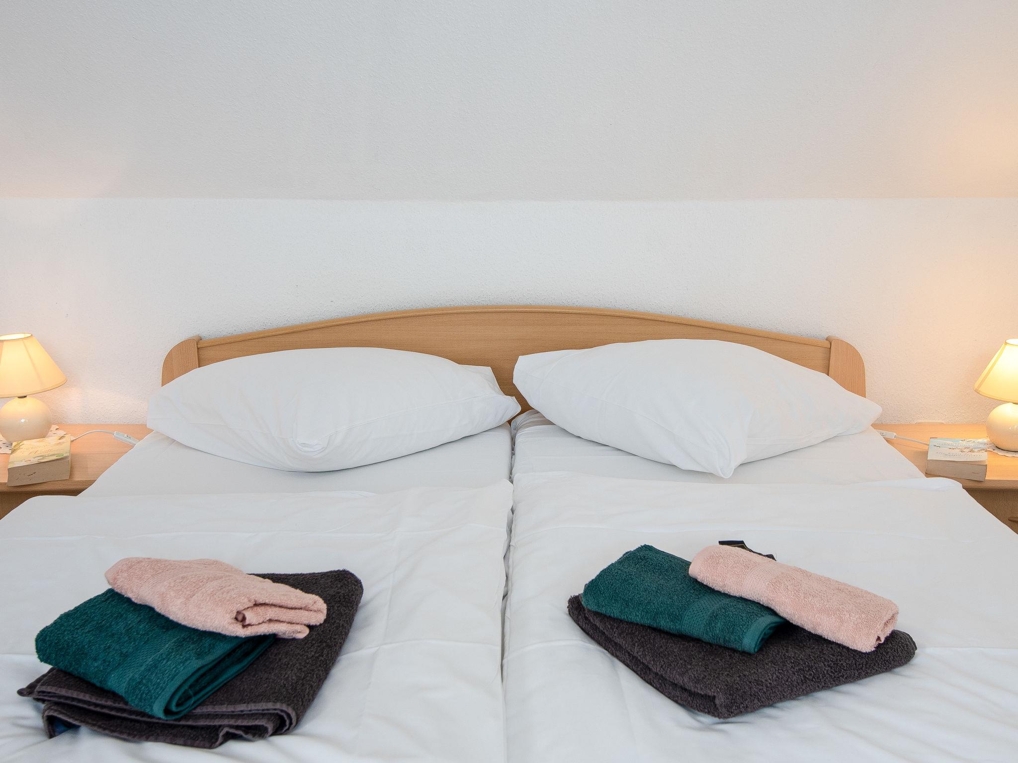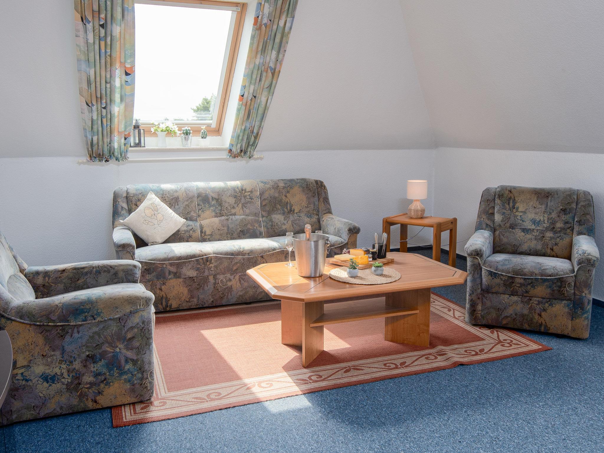 "Mantelmöwe", 2-room apartment 65 m2, on the top floor. With sloping ceilings, cosy furnishings: living/dining room 32 m2 with cable TV (flat screen), hi-fi system. Exit to the balcony. 1 room 13 m2 with 1 double bed (2 x 90 cm, length 200 cm). Kitchenette (4 hot plates, oven, toaster, kettle, microwave, electric coffee machine). Shower/WC. Balcony 10 m2, north-west facing position and west facing position. Balcony furniture. Facilities: children's high chair (extra), hair dryer. Internet (WiFi, free). Please note: non-smokers only. Smoke alarm.