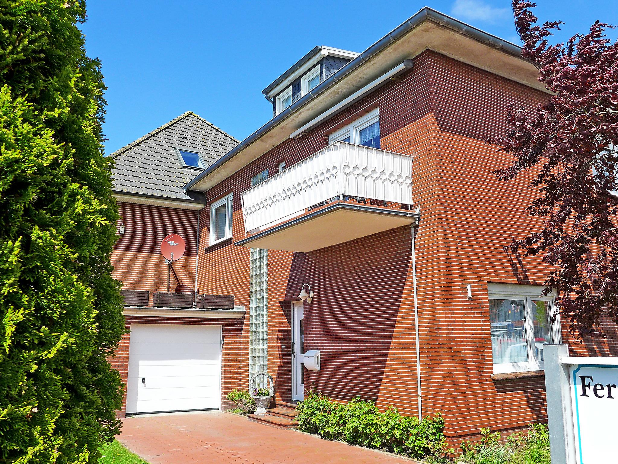 Apartment house. In the centre of Norddeich, 500 m from the sea, 650 m from the beach, in a cul-de-sac. In the house: storage room for bicycles, central heating system. Parking at the house. Grocery 700 m, supermarket 800 m, restaurant 50 m, bakery 10 m, bus stop 150 m, railway station 900 m, ferry 950 m, sandy beach 650 m, outdoor swimming pool 14 km, indoor swimming pool. Golf course (18 hole) 8 km, surf school 900 m. Post office on the ground floor of the house.