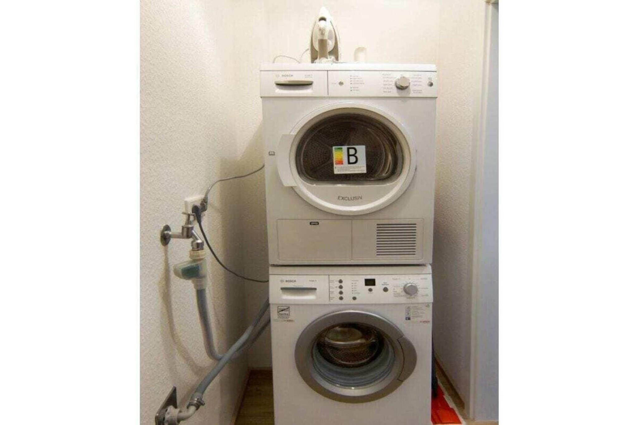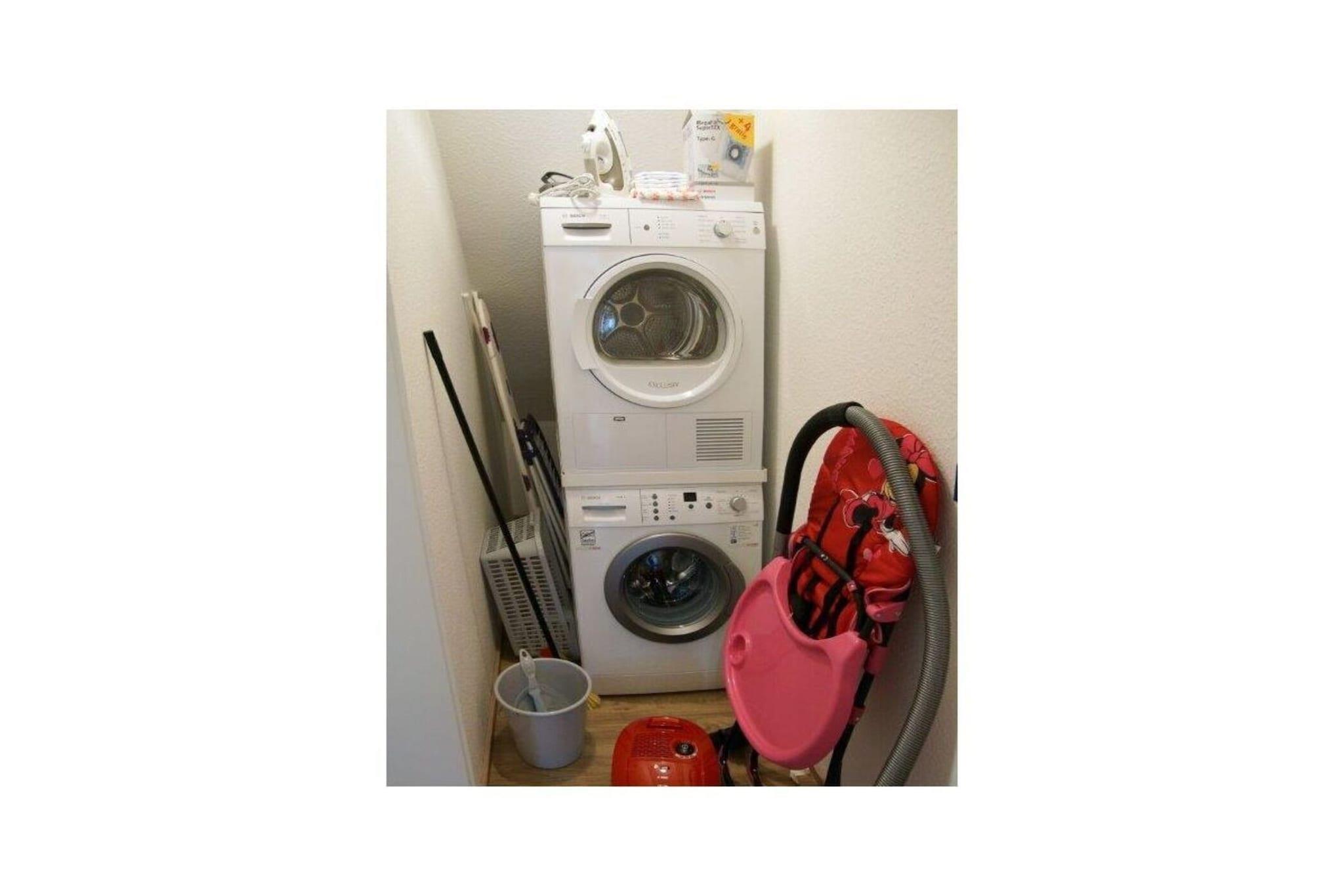 On the 1st floor: (Living room(DVD player, radio, heating), Kitchen(hob, electric kettle, toaster, cooker, coffee machine, oven, microwave, dishwasher, fridge, freezer), bedroom(Wardrobe, double bed, children's bed), bedroom(Wardrobe, double bed, children's bed), bathroom(shower, washbasin, hairdryer)) Attic: (bedroom(double bed)) Internet Access DSL, Vacuum Cleaner, hallway(Wardrobe Coatrack), Internet access, Internet access, tumble dryer, washing machine, balcony(balcony), garden furniture, iron, drying cabinet, parking (paying)