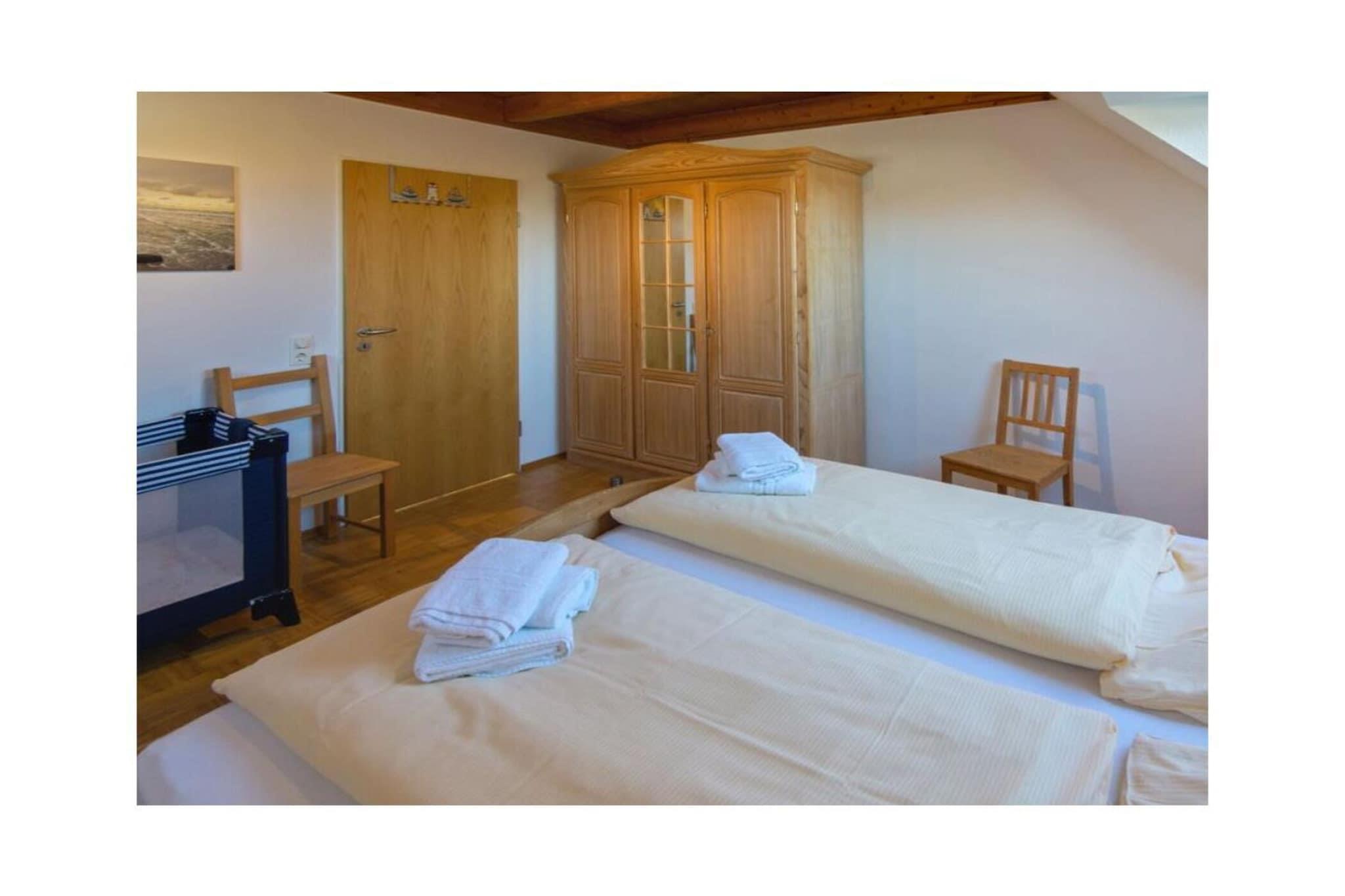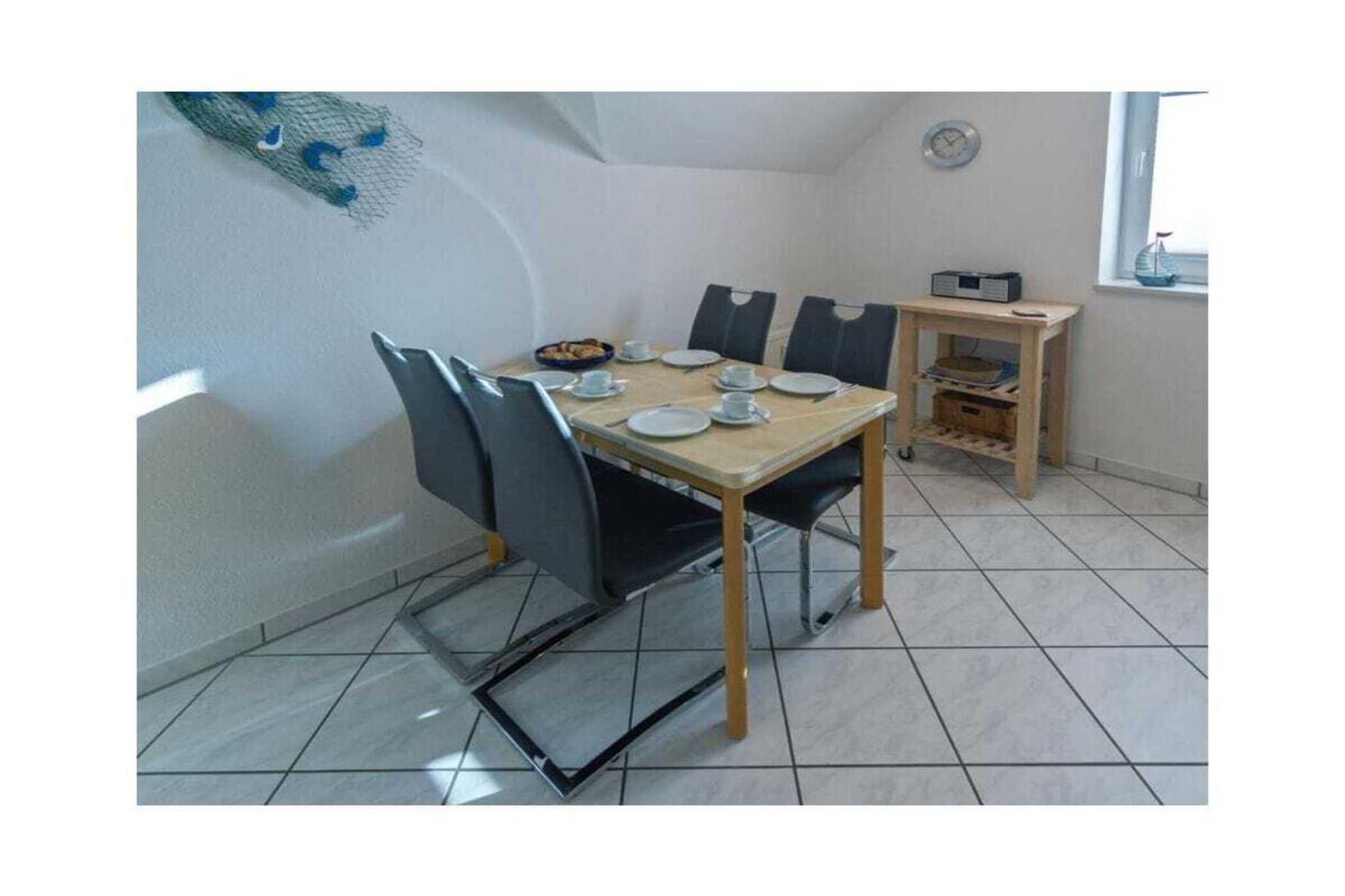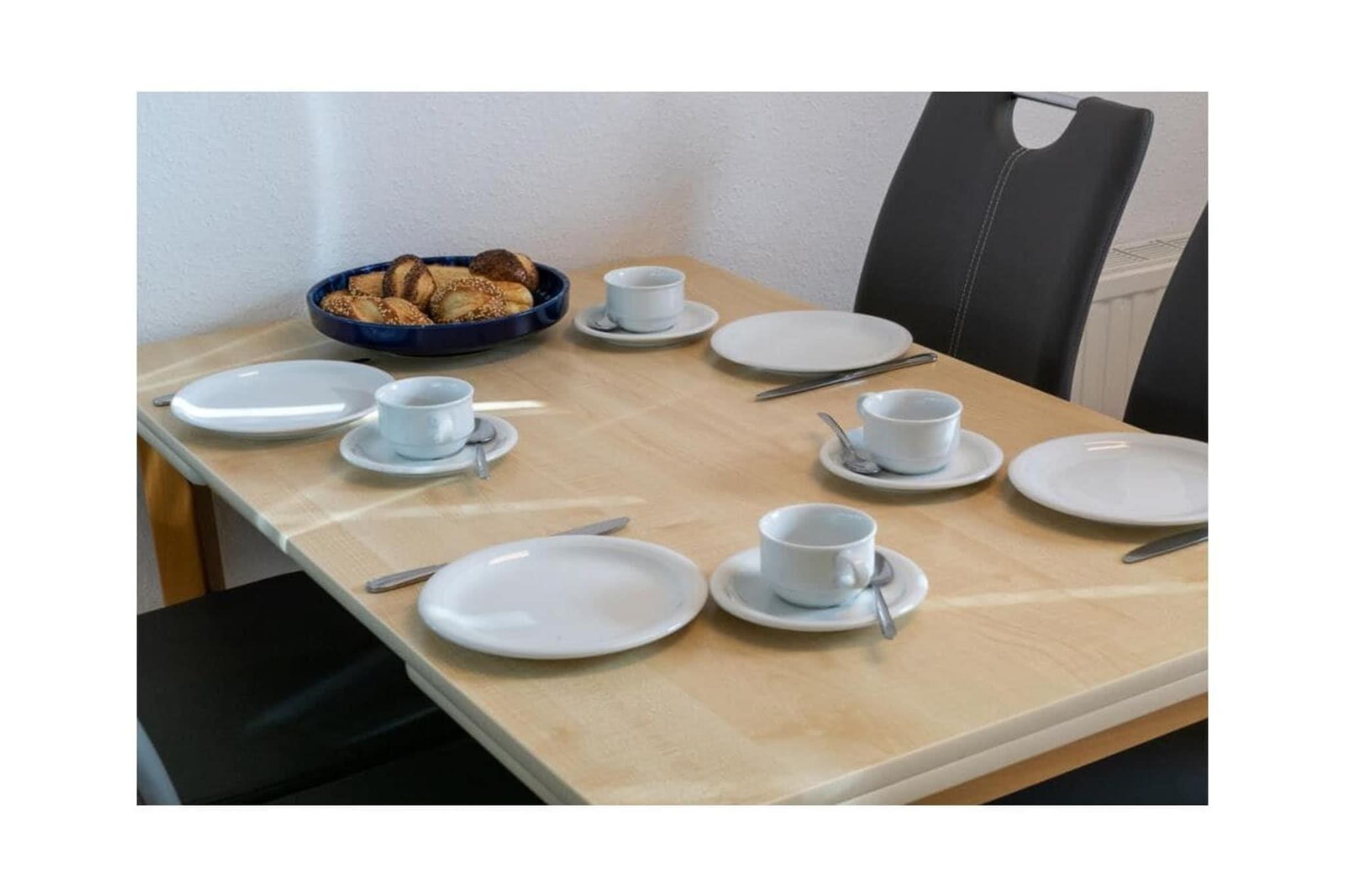 Holiday apartment Nörddiek Holiday apartment Nörddiek exudes great coziness due to its lovingly put together furnishings. A family of four will find all the comfort they need here. The large living area including TV, satellite TV, DVD and CD player invites you to spend sociable evenings. The special thing about this apartment is definitely the wonderful view of the North Sea, which you can enjoy from the upper floor. In the large kitchen-living room you will find everything you need for a pleasant stay. In addition to the cooking utensils, there is a dishwasher, a filter coffee machine, toaster, egg cooker and kettle. The Nörddiek apartment has two bedrooms. The first, including a double bed, is on the same floor as the living area. The second bedroom is on the open gallery. Families with a baby or toddler have more than just a baby travel bed at their disposal. The children's crockery available also testifies to the child-friendliness of this holiday apartment. The holiday apartment also has a storage room, in which, among other things, utensils such as a vacuum cleaner, dustpan & broom and clothes rack with clothespins are available. In the communal basement you also have the option of using the washing machine and dryer for a fee. Here you will also find an iron and an ironing board. For a carefree start to your vacation, book our laundry package. This consists of bed linen, towels, shower mats, tea towels and a service set (toilet paper, dishwasher tablets, garbage bags, dish brush, cleaning cloths and other small helpers) for a carefree start to your vacation.