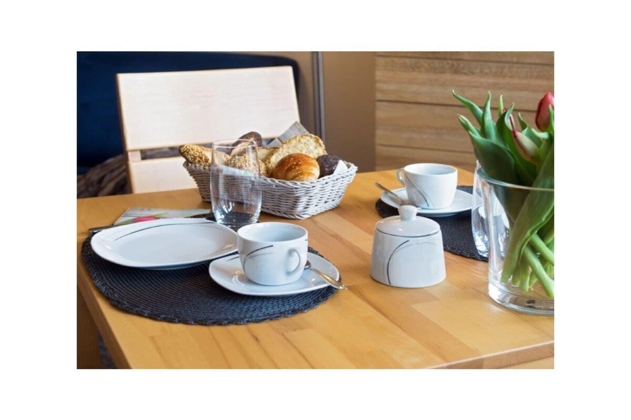 Holiday apartment Jolle D11 Jolle D11 is your little holiday paradise in Norddeich. Two people will find everything they need for a pleasant stay in the comfortable and comfortably furnished apartment. The cozy seating area in the spacious living area invites you to linger. A modern flat screen TV including satellite TV, DVD player and the music system provide the desired entertainment. Bright, warm colors and many lovingly selected maritime accessories dominate this living area, so that you feel completely at home from the very first moment. The bathroom was completely renovated at the beginning of 2022 and now shines in a new light. The chic fitted kitchen is perfectly equipped so that no culinary wishes are left unfulfilled for cozy evenings for two. In addition to the usual cooking utensils and kitchen appliances, you also have a microwave and of course a dishwasher at your disposal. A comfortable box spring bed awaits you in the bedroom, so you don't have to worry about your restful sleep. What is particularly nice about this property is the fully equipped terrace with a small garden, which completes your little kingdom. Spend carefree and relaxing hours here. For a carefree start to your vacation, book our linen package. This consists of bed linen, towels, shower mats, tea towels and a service set (toilet paper, dishwasher tablets, garbage bags, dish brush, cleaning cloth and other small helpers) for a carefree start to your vacation.