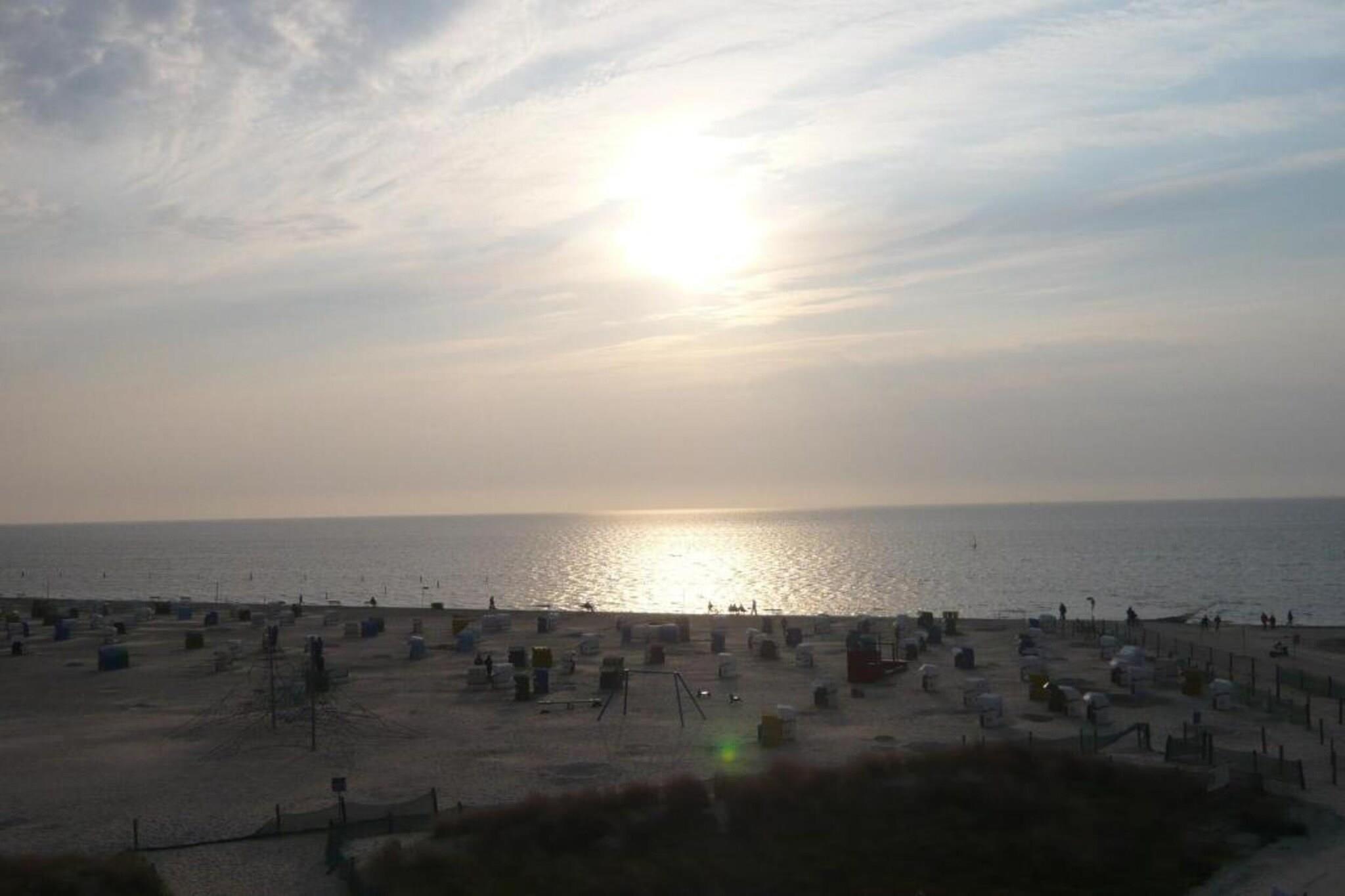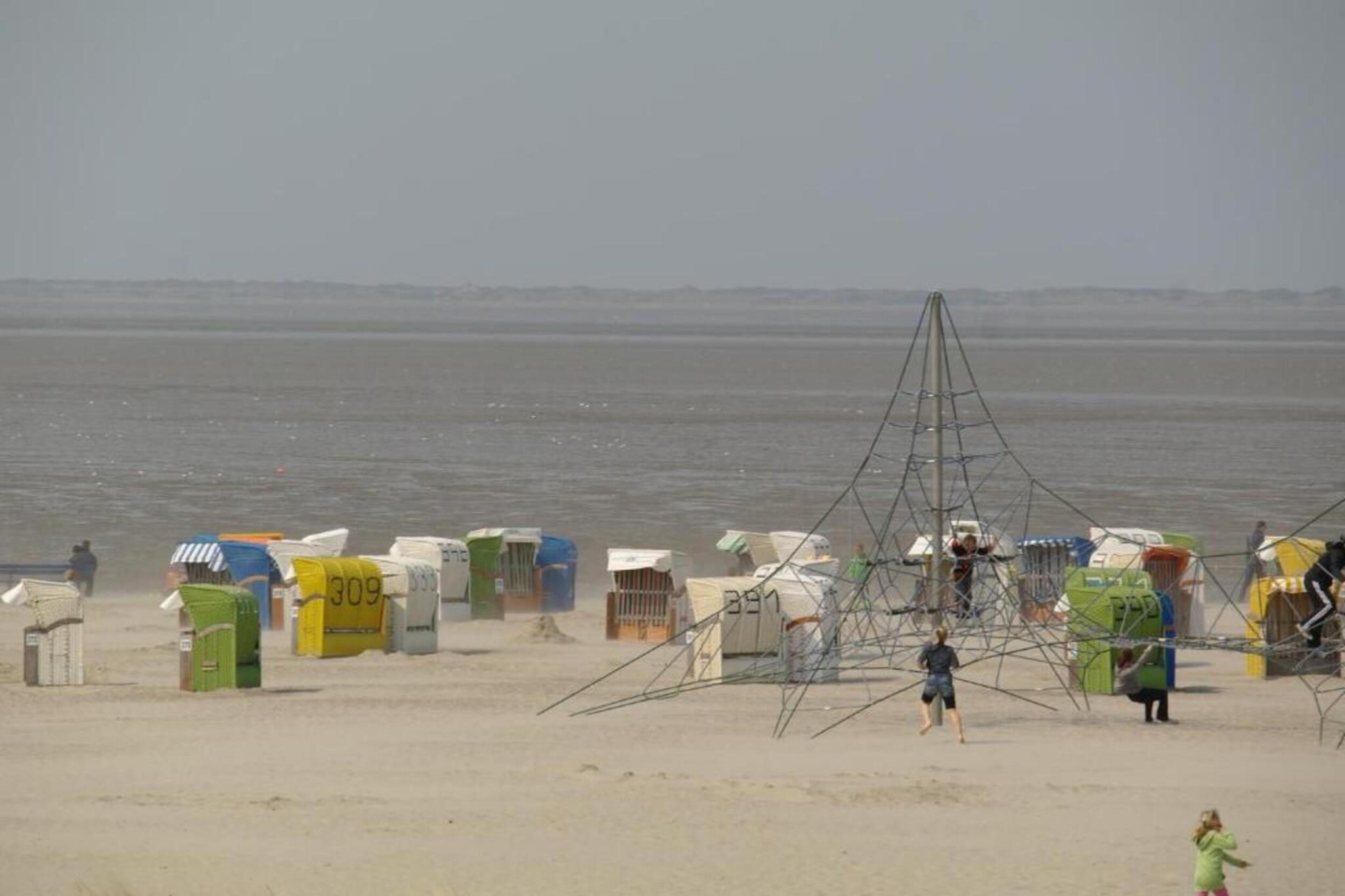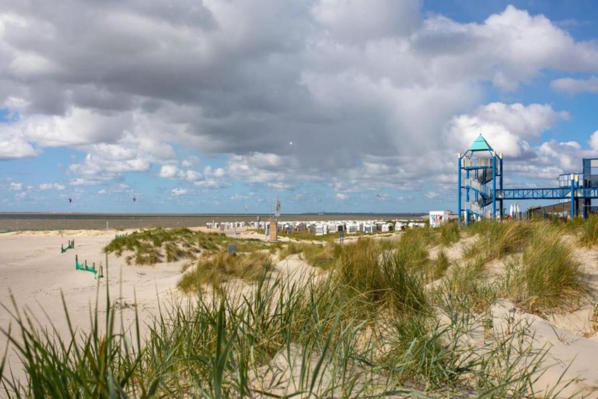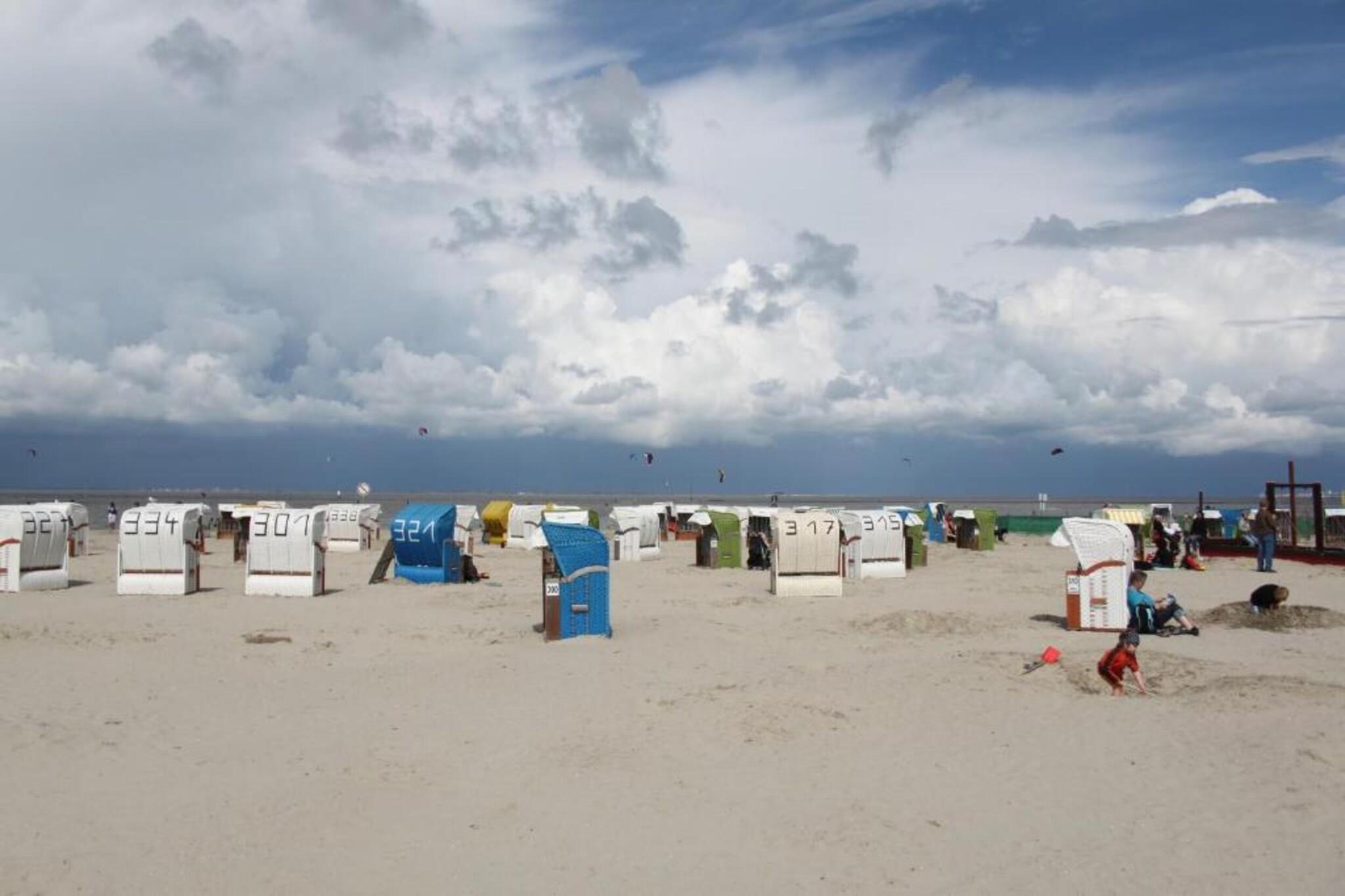 Holiday apartment "achtern Deich" The holiday apartment "achtern Deich" is equipped for 4 people. It is located in the north, at Muschelweg 22 K, and there on the upper floor of a terraced house in a quiet side street not far from the beach, it is only about 200 - 300 meters as the crow flies. A combined living room with kitchen and dining area is available to our guests for cooking and sitting together comfortably. The balcony can be used directly from the dining room (furnished). The kitchen is fully equipped, with oven, stove, coffee/pad machine, refrigerator and microwave, dishwasher, dishes, toaster and kitchenette. A bedroom can be found in the basement; here a double bed measuring 180 x 200 with separate mattresses awaits our guests; it is completed with an open closet system and a television with integrated DVD player and a TV with satellite. The bedroom on the upper floor offers additional overnight accommodation with two single beds (90 x 200), as well as an open closet system and a television. In the bathroom we offer a toilet/shower/washing combination - a washing machine is in the storage room. A parking space belongs to the holiday apartment. Smoking is not permitted here. We can provide bed linen, bath mats, tea towels and hand towels on request. Your pet does not have to stay home alone, because it is very welcome in this apartment. The fee for the dog is EURO10.00 per night. For a carefree start to your holiday, book our linen package. This consists of bed linen, hand towels, bath mats, tea towels and a service set (toilet paper, dishwasher tablets, garbage bags, dish brush, cleaning cloths and other little helpers for a carefree start to your holiday.