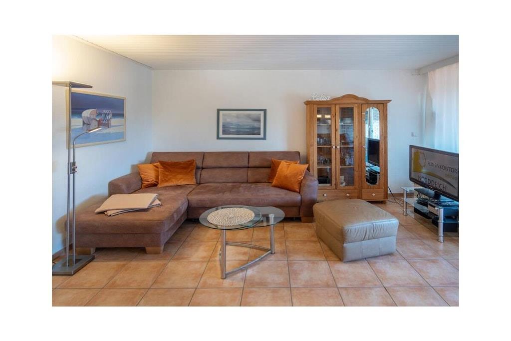 Holiday apartment Dörperweg 3, Norddeich, sea view Apartment 17, 3rd floorThis beautiful holiday apartment is in a wonderfully central location in Norddeich, just a few steps behind the dike. Due to its location on the top floor of a well-kept apartment building, guests can enjoy a side view of the sea. The pretty little apartment has been furnished with great attention to detail and a sense of functionality. The heart of the apartment is the combined living and dining area, which invites you to spend many pleasant hours. The living area has been equipped with a comfortable corner sofa (with sleeping function) and a TV corner, so that entertainment is guaranteed even on rainy days. The kitchen is practically furnished and has everything you need for cooking together. In addition to the dishes and cutlery, this includes amenities such as a stove with oven, a coffee machine, a refrigerator, a microwave, a dishwasher integrated into the kitchenette, a toaster and an egg cooker. The cozy dining area offers space for four people. The highlight of the sea view apartment is the balcony adjacent to the living room. This has been converted into a glazed winter garden. This means you can enjoy the wonderful North Sea panorama even in winter. When the weather is nice, the winter garden can be opened so that guests can fully enjoy the pleasant climate. Thanks to the south-west orientation, you can enjoy the wonderful sea view from the balcony/winter garden. A comfortable seating area for four people ensures comfort. The guest apartment has a small, cozy bedroom, which is equipped with two 90 x 200 cm single beds. The wardrobe offers enough space for the wardrobe. In addition, jackets and coats can also be stored in a second closet in the hallway. The beautifully designed small bathroom has a shower, a toilet and a washbasin combination with a large