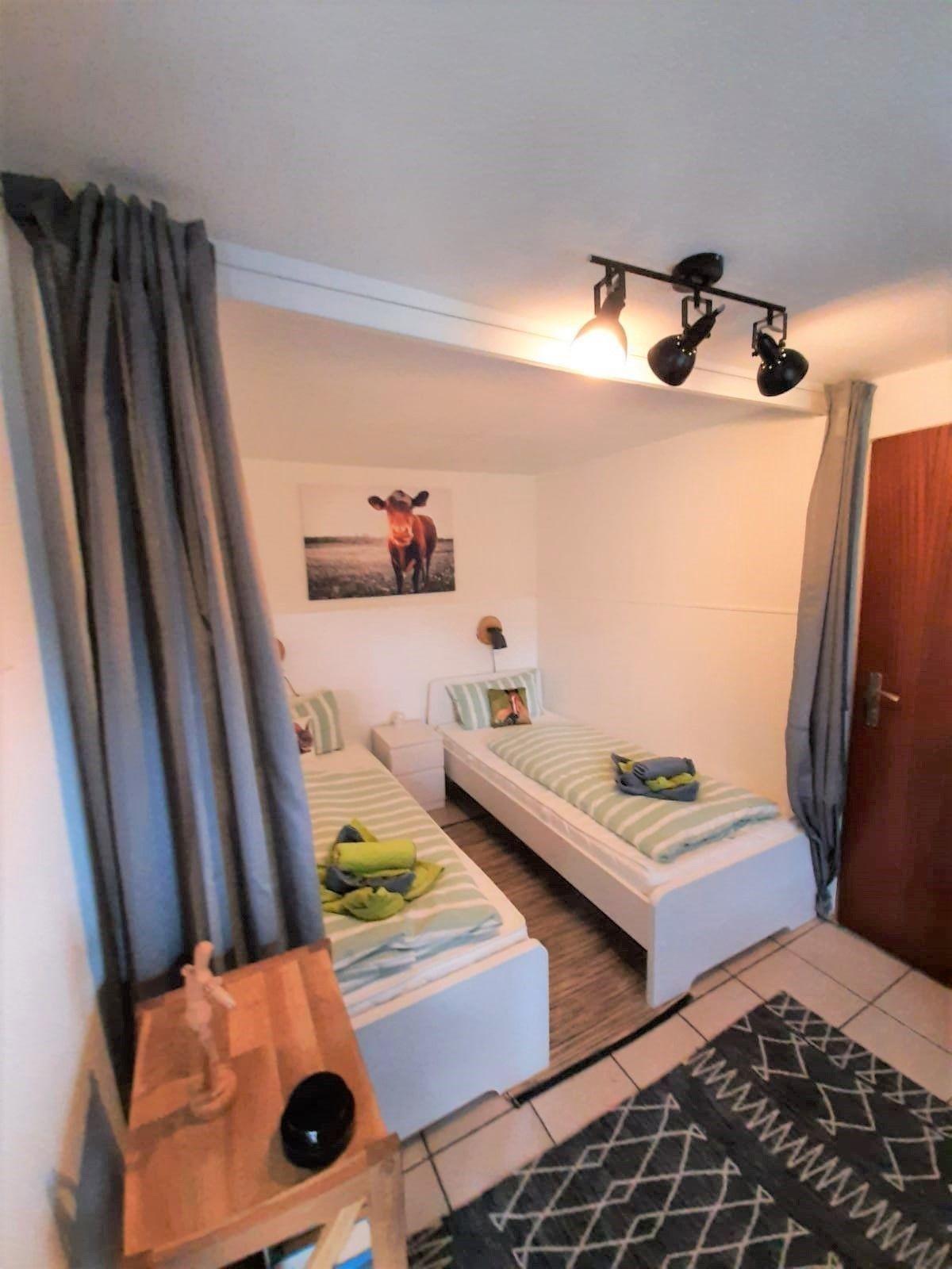 In dieser stilvollen Ferienwohnung erwartet die Gäste ein komfortabler Rückzugsort mit modernem Ambiente. Die Wohnung verfügt über zwei Schlafzimmer, eines mit einem gemütlichen Doppelbett und das andere mit zwei Einzelbetten, ideal für Familien oder Gruppen. Die offene Küche ist mit einem Elektro- und Gasherd, Backofen, Mikrowelle, Kühlschrank und Gefriermöglichkeit ausgestattet und bietet alles, was für die Zubereitung von Mahlzeiten benötigt wird. Ein Esstisch schafft den perfekten Rahmen für gemeinsame Dinner. Das Badezimmer, lichtdurchflutet durch ein Fenster, ist mit hochwertigen Annehmlichkeiten ausgestattet. Der Wohnbereich lädt mit einem Sofa und Sessel zum Entspannen ein. Zur weiteren Ausstattung gehören WLAN, TV und eine Heizung für wohlige Wärme. Allergikerfreundliche Materialien sorgen für ein gesundes Wohnklima. Ein Parkplatz ist ebenfalls vorhanden, was die Anreise bequem gestaltet.