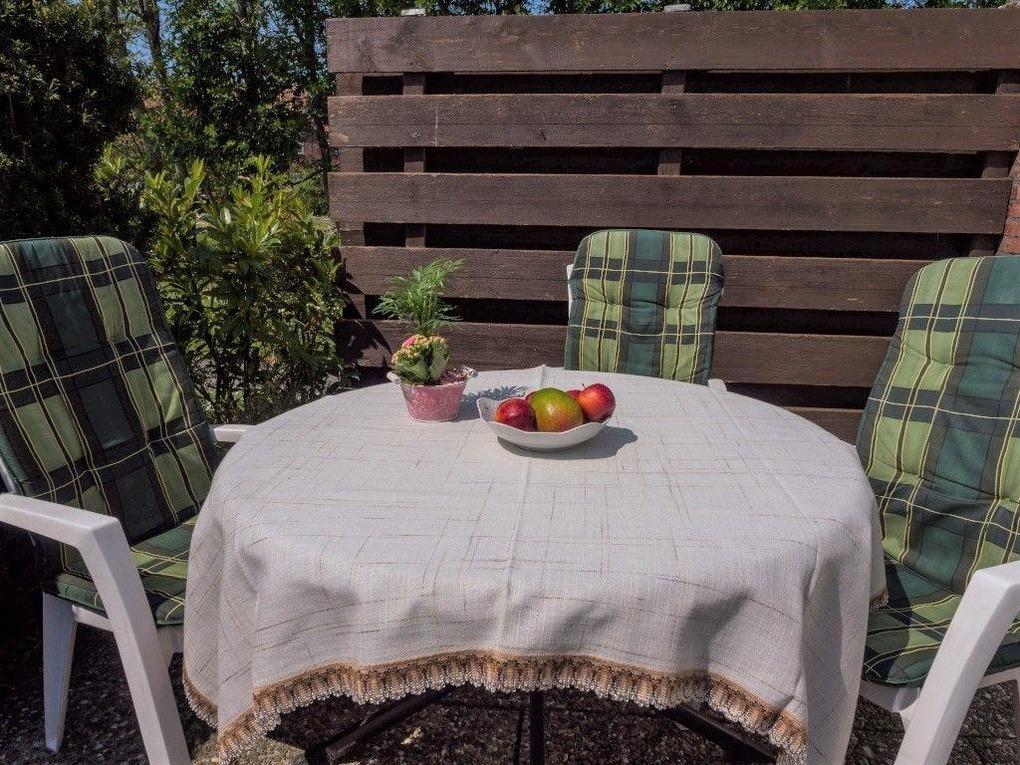 Die Ferienwohnung bietet einen eigenen Garten, der zum Entspannen und Verweilen einlädt. Eine großzügige Terrasse mit Markise sorgt für schattige Plätze an sonnigen Tagen. Hier kann die Natur in vollen Zügen genossen werden, während der private Außenbereich zum Grillen oder einen gemütlichen Abend im Freien einlädt.