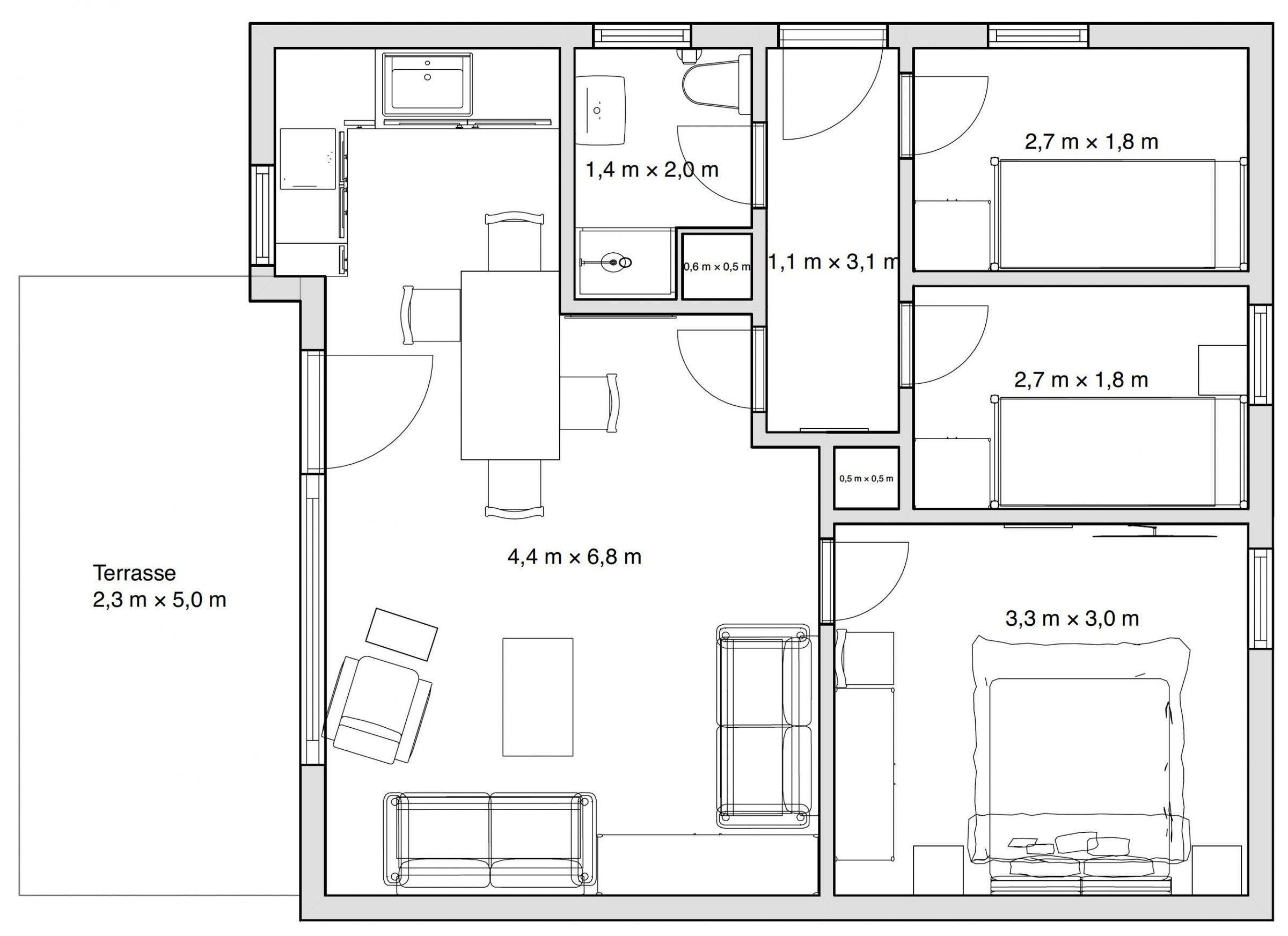 Die Ferienwohnung bietet eine komfortable und allergikerfreundliche Unterkunft mit insgesamt drei geschmackvoll eingerichteten Schlafzimmern, darunter ein Doppelbett und drei Einzelbetten. Die offene Küche ist mit modernen Geräten ausgestattet, darunter ein Geschirrspüler, ein Elektro-/Gasherd, ein Backofen, eine Mikrowelle, ein Kühlschrank, eine Kaffeemaschine, ein Toaster und eine Espressomaschine. Ein Duschbad mit bodengleicher Dusche und Fenster sorgt für zusätzlichen Komfort. Die Wohnbereiche sind mit einer HiFi-Anlage, TV sowie einem Esstisch und einem gemütlichen Sofa mit Sessel ausgestattet. WLAN-Internet steht zur Verfügung, und ein Parkplatz ist ebenfalls vorhanden. Diese Unterkunft ist ideal für Familien oder Gruppen, die eine entspannte Auszeit suchen.