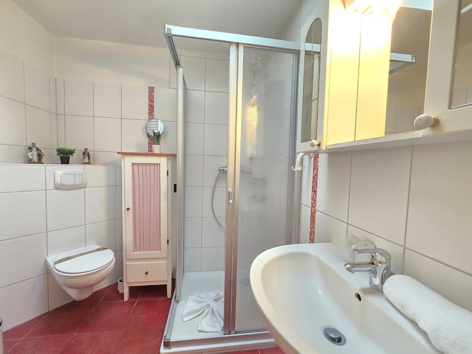 Die Ferienwohnung bietet eine komfortable und allergikergeeignete Unterkunft, die sich ideal für Familien oder kleine Gruppen eignet. Mit zwei Schlafzimmern, ausgestattet mit einem Doppelbett und einem Einzelbett, sowie einem hellen Badezimmer mit Fenster, sorgt sie für Entspannung und Erholung. Die separate Küche verfügt über einen Elektroherd, Backofen und Mikrowelle sowie eine Gefriermöglichkeit, Kühlschrank, Kaffeemaschine, Toaster und Geschirr. Ein Esstisch lädt zu gemeinsamen Mahlzeiten ein. Zur weiteren Ausstattung gehören ein Wohnzimmer mit Sofa und Sessel, TV sowie ein Haartrockner im Badezimmer. Internet mit WLAN steht zur Verfügung, und ein Parkplatz ist ebenfalls vorhanden. Für die kleinen Gäste gibt es einen Kinderhochstuhl. Die Wohnung ist ideal für einen entspannten Urlaub, ausgestattet mit einem Starterset an Reinigungsmitteln und Pflegeprodukten, sowie einem Sonnenschirm für die sonnigen Tage.