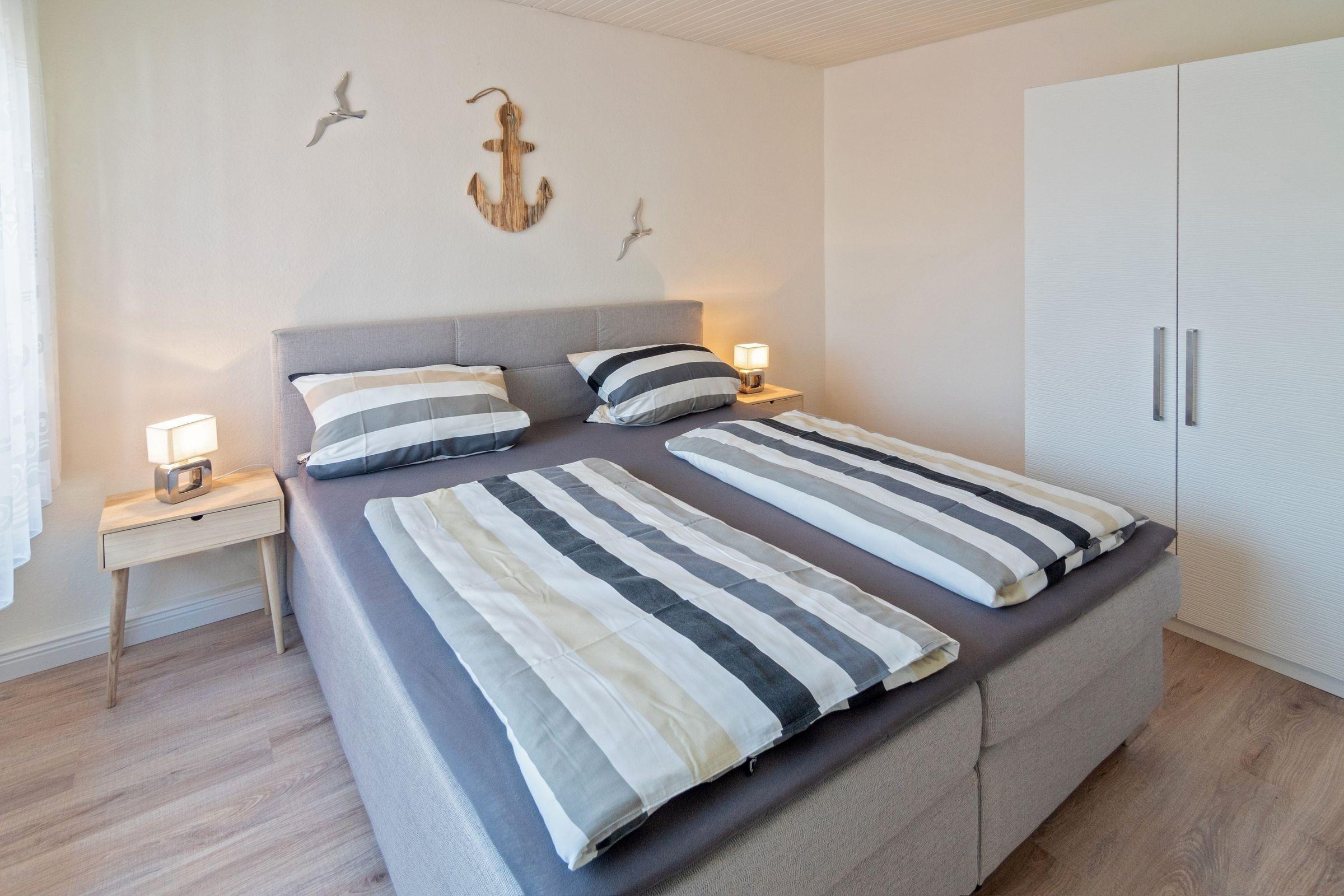 Die Ferienwohnung bietet eine moderne und komfortable Ausstattung, die für einen erholsamen Aufenthalt sorgt. Sie verfügt über drei Schlafzimmer, darunter zwei mit Doppelbetten und eines mit einem Einzelbett sowie einem Kinderbett, ideal für Familien. Die offene Küche ist voll ausgestattet mit Geschirrspüler, Elektro-/Gasherd, Backofen, Kühlschrank, Mikrowelle, Kaffeemaschine, Wasserkocher, Toaster und einer Gefriermöglichkeit. Ein Esstisch lädt zu gemeinsamen Mahlzeiten ein. Das barrierefreie Duschbad ist mit einer bodengleichen Dusche, einem Haartrockner und einem Fenster versehen. Im Aufenthaltsbereich sorgen Sofa und Sessel für Entspannung, während die HiFi-Anlage und der Fernseher Unterhaltung bieten. WLAN-Internet ist verfügbar. Zur Ausstattung gehören zudem ein Parkplatz sowie eine Waschmaschine. Diese Wohnung ist allergikergeeignet und bietet auch eine ideale Umgebung für Reisende mit besonderen Bedürfnissen.