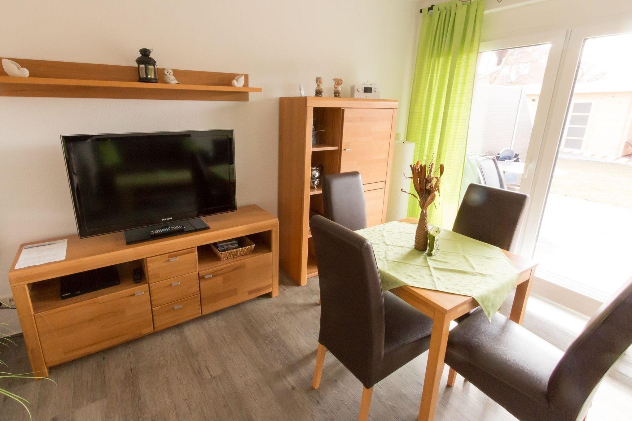 Die Ferienwohnung bietet einen entspannenden Gartenblick und ist ideal für Gruppen und Familien bis zu vier Personen, perfekt gelegen für einen unvergesslichen Urlaub in Norddeich.