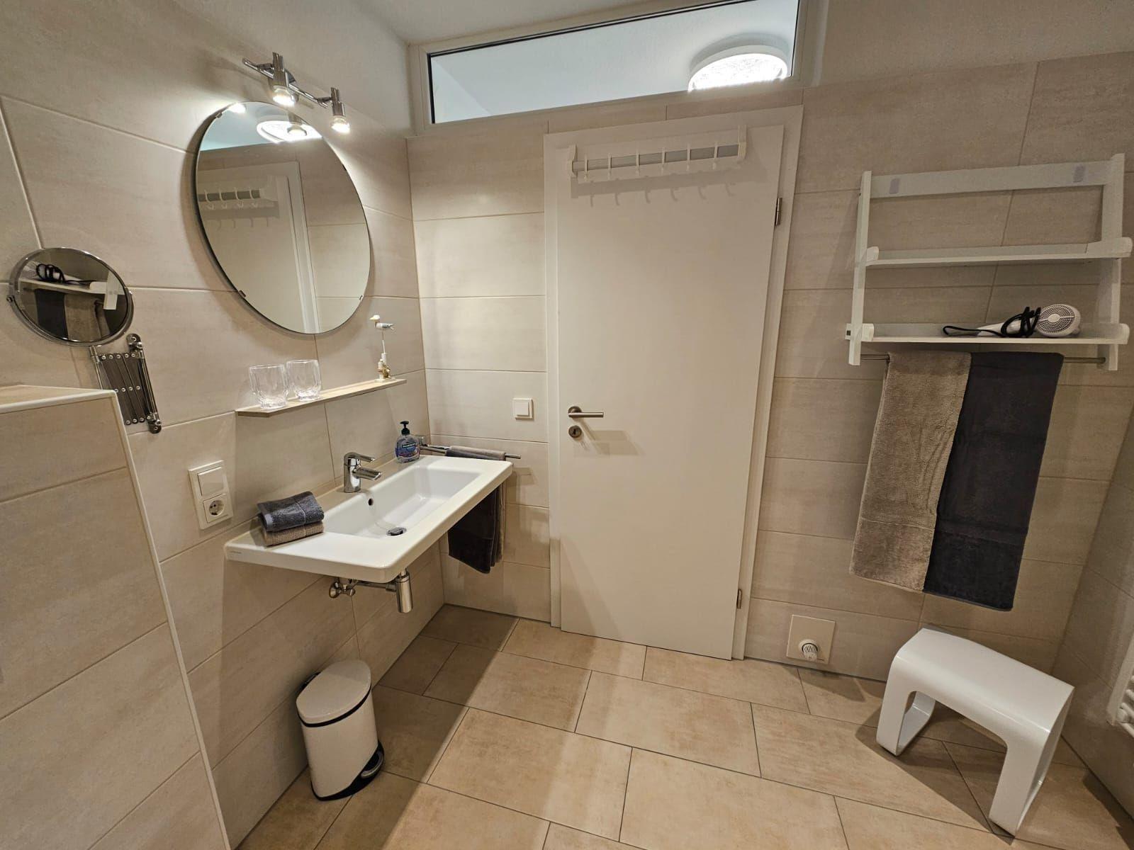 Die Ferienwohnung überzeugt durch ihre großzügige und allergikergeeignete Ausstattung. Sie bietet zwei Schlafzimmer, eines mit einem Doppelbett und ein weiteres mit zwei Einzelbetten. Die offene Küche ist ideal für gemeinsame Kochabende und ist mit einem Geschirrspüler, einem Elektro-/Gasherd, Backofen, Mikrowelle, Kühlschrank sowie einer Kaffeemaschine und einem Toaster ausgestattet. Ein Esstisch lädt zu gemeinsamen Mahlzeiten ein. Das moderne Badezimmer verfügt über eine bodengleiche Dusche, ein Fenster und ein Starterset mit Seife, Duschgel und mehr. Weitere Annehmlichkeiten umfassen WLAN, eine HiFi-Anlage, TV, einen Parkplatz, eine Waschmaschine und einen Wäschetrockner. Für Familien steht ein Kinderhochstuhl bereit. Ein Wohnzimmer mit Sofa und Garderobe sorgt für zusätzlichen Komfort. Pflegeartikel sowie Reinigungsmittel sind ebenfalls vorhanden, um den Aufenthalt so angenehm wie möglich zu gestalten.