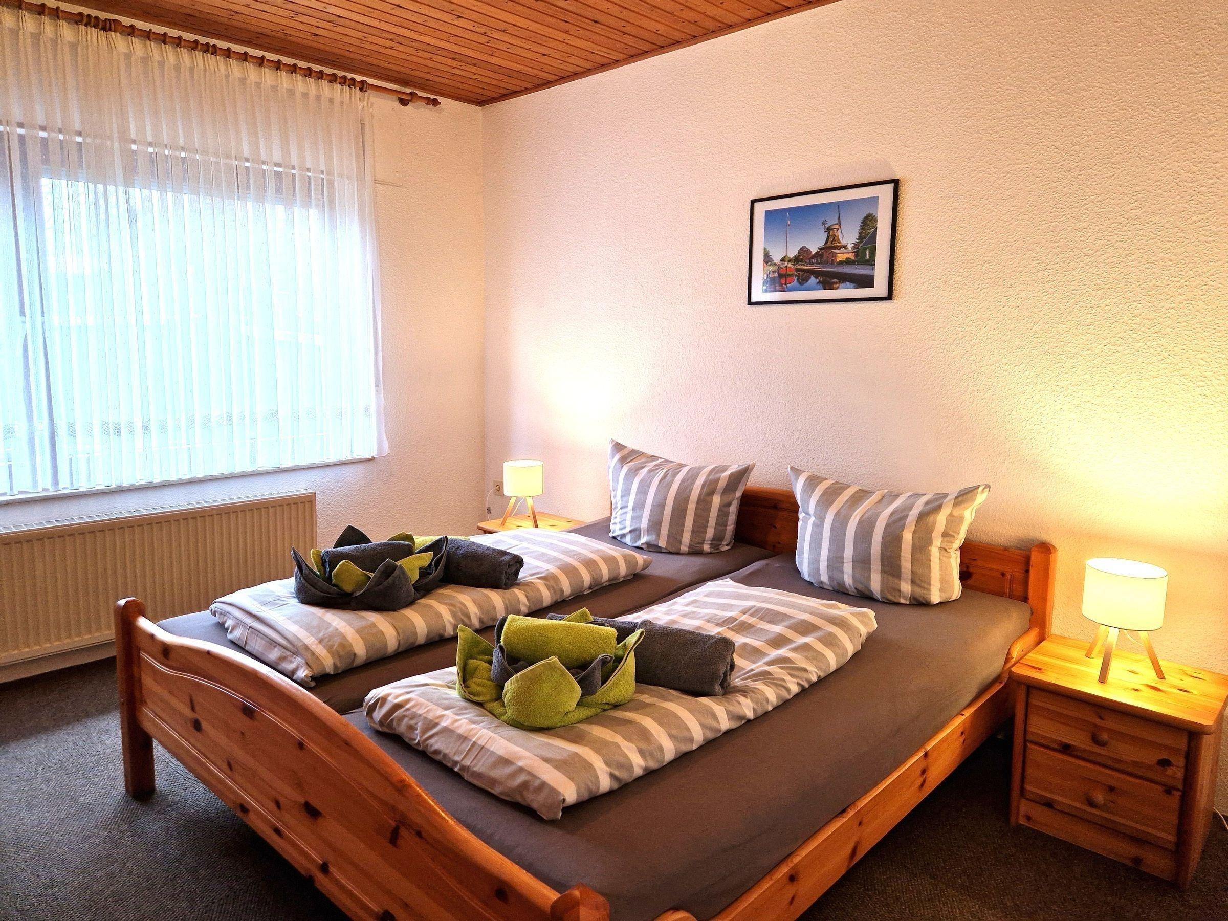 Die Ferienwohnung bietet eine komfortable und allergikerfreundliche Unterkunft, die ideal für entspannte Urlaube ist. Sie umfasst zwei helle Schlafzimmer mit jeweils einem Doppelbett, die für erholsame Nächte sorgen. Die separate Küche ist komplett ausgestattet mit Geschirrspüler, Elektro-/Gasherd, Backofen, Mikrowelle, Kühlschrank, Kaffeemaschine, Toaster und Wasserkocher. Ein Esstisch lädt zu gemeinsamen Mahlzeiten ein. Das moderne Badezimmer mit Fenster verfügt über eine bodengleiche Dusche und ist mit Spiegel ausgestattet. Im gemütlichen Wohnzimmer stehen ein Sofa und ein Sessel für entspannte Abende bereit, während die HiFi-Anlage und der TV für Unterhaltung sorgen. Kostenloses WLAN sorgt für Internetzugang. Ein Parkplatz ist ebenfalls vorhanden. Zur weiteren Ausstattung zählen Staubsauger und Wäscheständer, die den Aufenthalt erleichtern. Diese Ferienwohnung kombiniert durchdachtes Design mit hoher Funktionalität für einen angenehmen Aufenthalt.