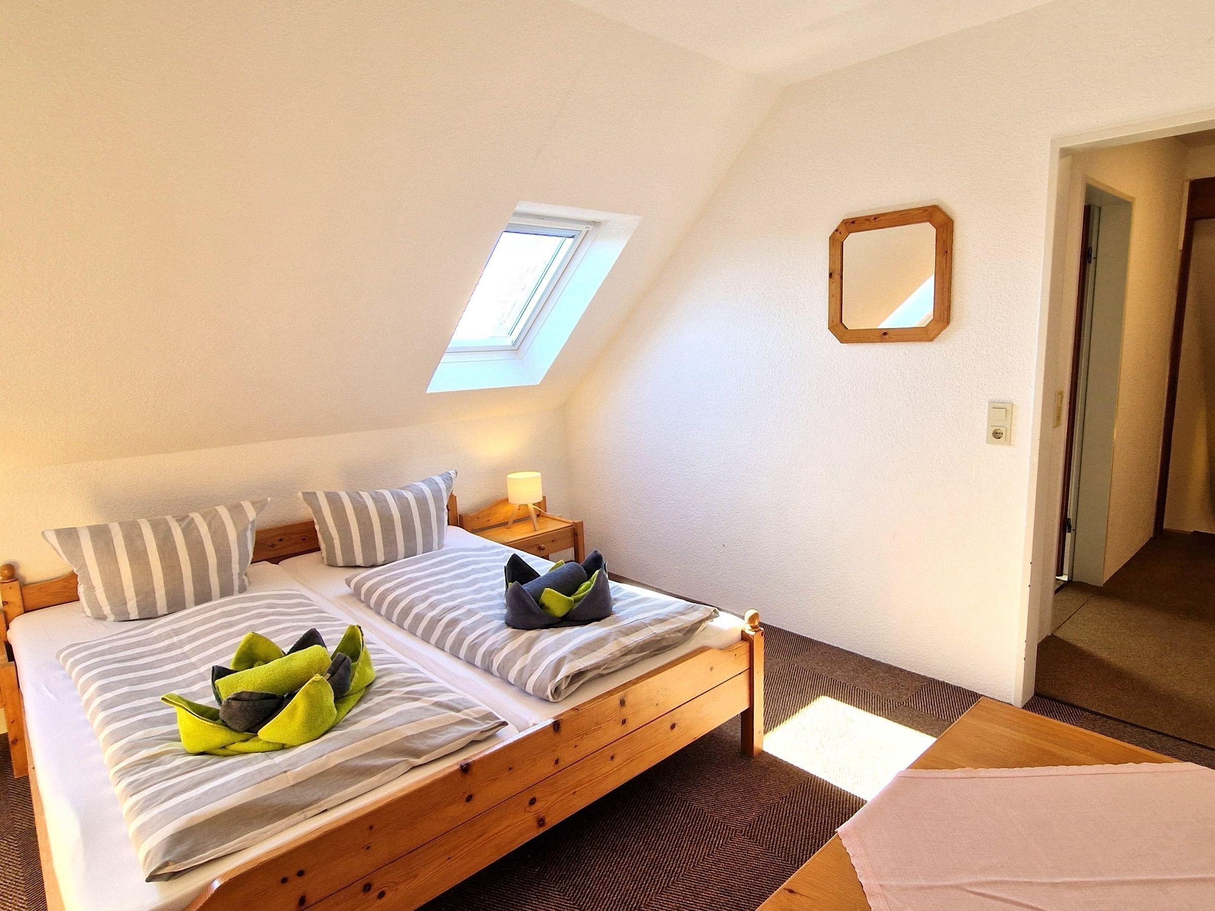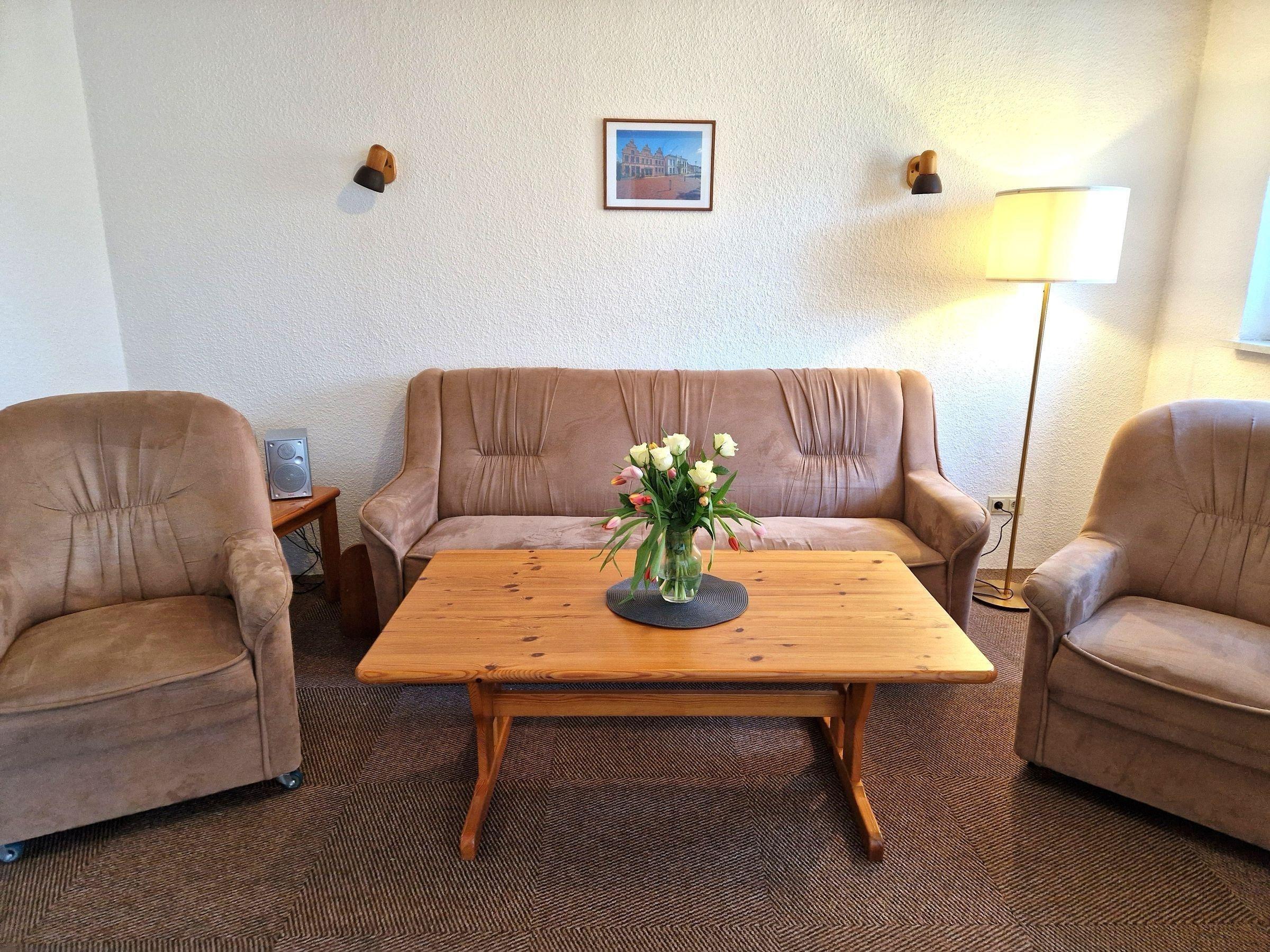 Die Ferienwohnung bietet eine stilvolle Unterkunft, die optimal für einen erholsamen Aufenthalt geeignet ist. Sie verfügt über zwei gemütliche Schlafzimmer, ausgestattet mit je einem Doppelbett, die eine Ruheoase schaffen. Die separate Küche ist bestens ausgestattet mit einem Elektro-/Gasherd, Backofen, Mikrowelle, Kühlschrank, Kaffeemaschine und Toaster – ideal für die Zubereitung von Mahlzeiten. Ein Duschbad mit Fenster sowie ein zusätzliches Gäste-WC sorgen für Komfort. Die helle und geräumige Wohnfläche umfasst einen Esstisch, ein Sofa und einen Sessel, während moderne Annehmlichkeiten wie WLAN, TV und eine HiFi-Anlage für Unterhaltung sorgen. Die Wohnung ist allergikergeeignet und bietet durch Heizung und einen Parkplatz zusätzlichen Komfort. Geschirr, Besteck, ein Wasserkocher und ein Wäscheständer sind ebenfalls vorhanden, sodass nichts für einen entspannten Aufenthalt fehlt.