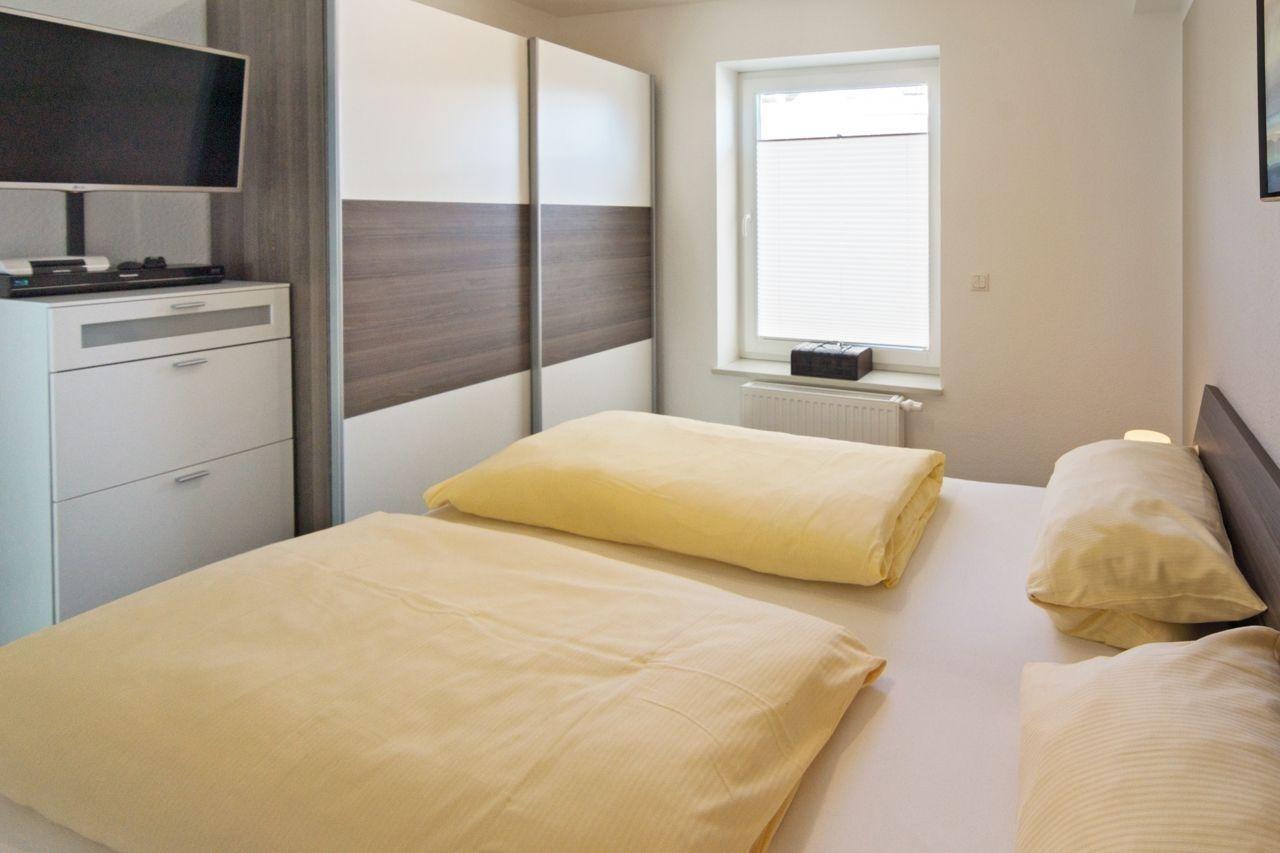 Auch die übrigen Bereiche der Wohnung bieten jeden denkbaren Komfort. Im Badezimmer stehen Fußbodenheizung sowie ein Handtuchtrockner zur Verfügung. Im geräumigen Schlafzimmer mit Doppelbett können Sie dank des Flat-TVs ebenfalls Fernsehen. Auch hier ist ein BlueRay-Player vorhanden.