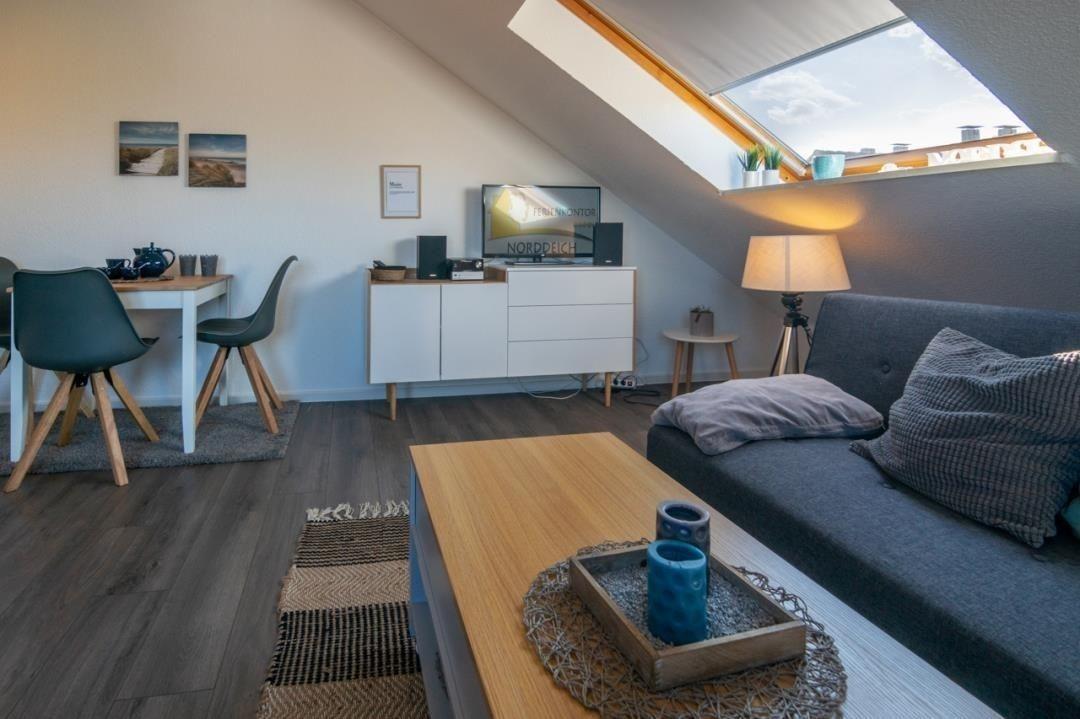 Entspannen Sie in dieser gemütlichen Ferienwohnung in Norddeich. Nur wenige Schritte vom Strand entfernt und mit Blick auf den Deich, ist sie ideal für einen erholsamen Urlaub zu zweit oder mit bis zu drei Personen.