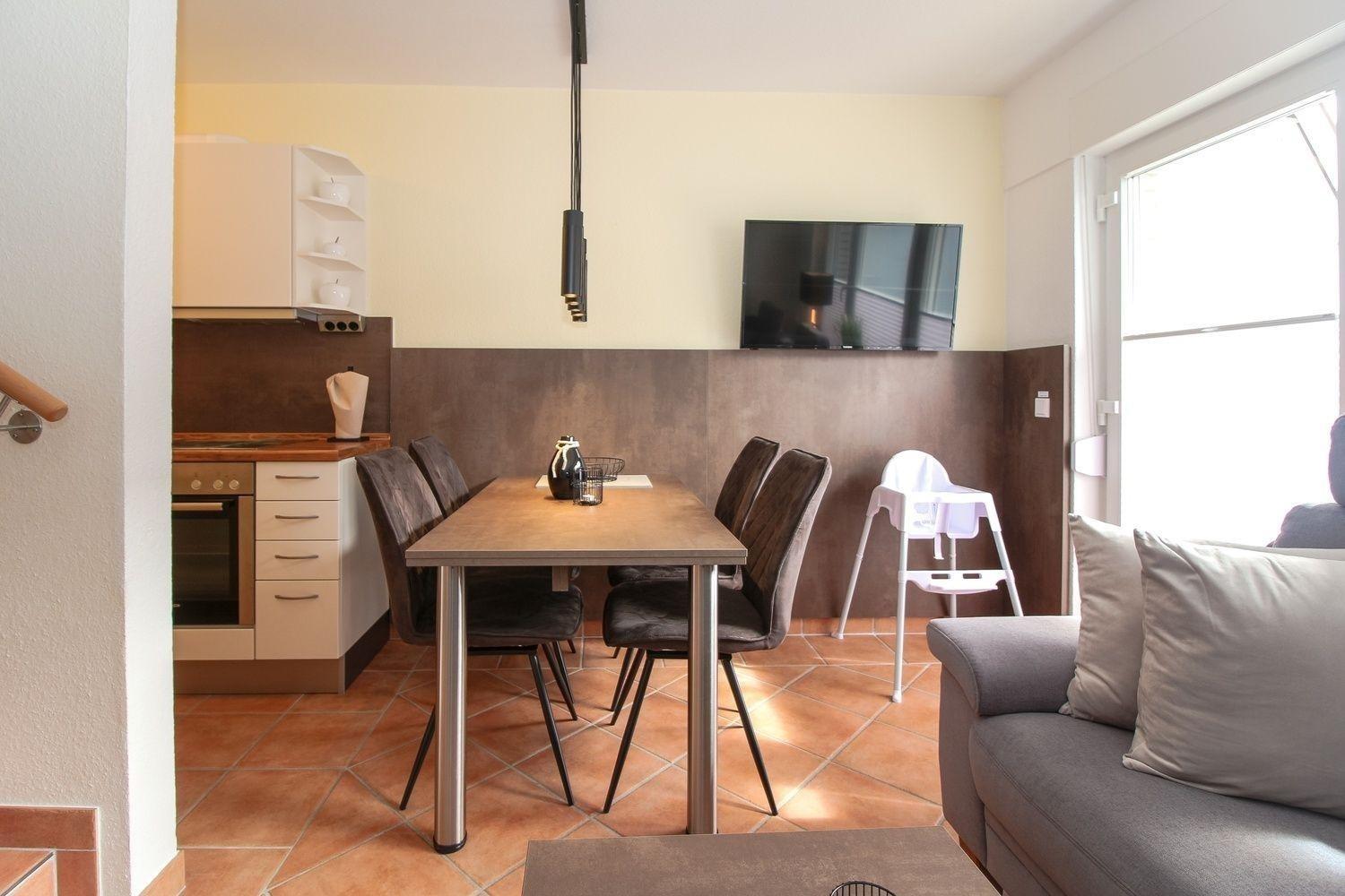 Dieses modernisierte Reihenhaus befindet sich in ruhiger Lage von Norddeich und bietet ein offenes Wohnkonzept über mehrere Ebenen.