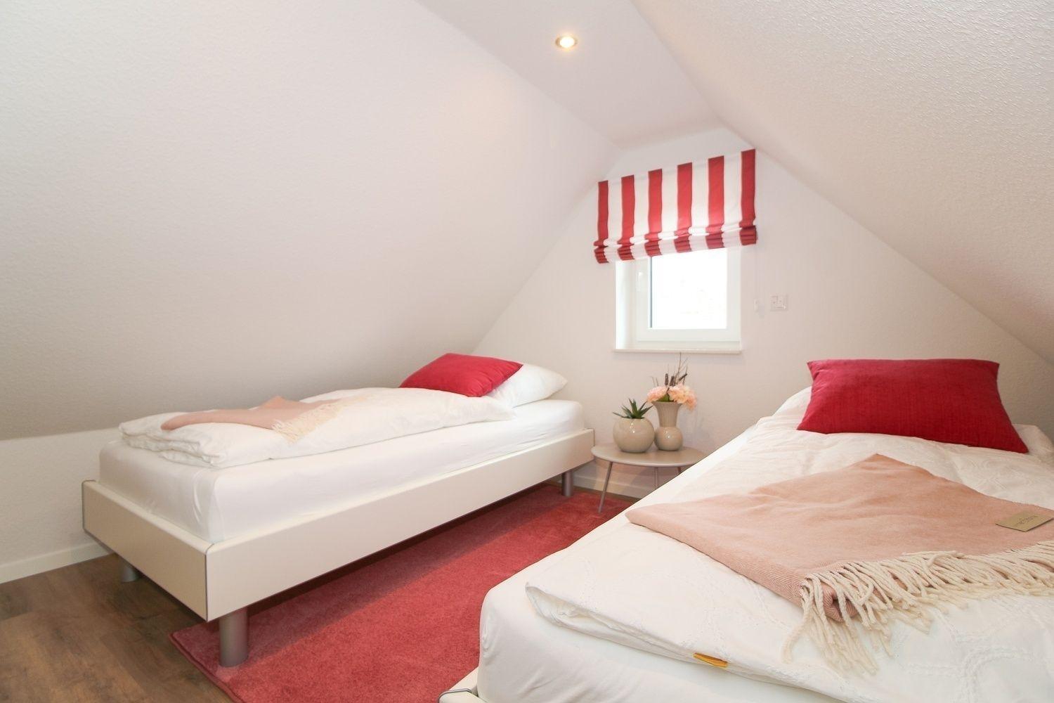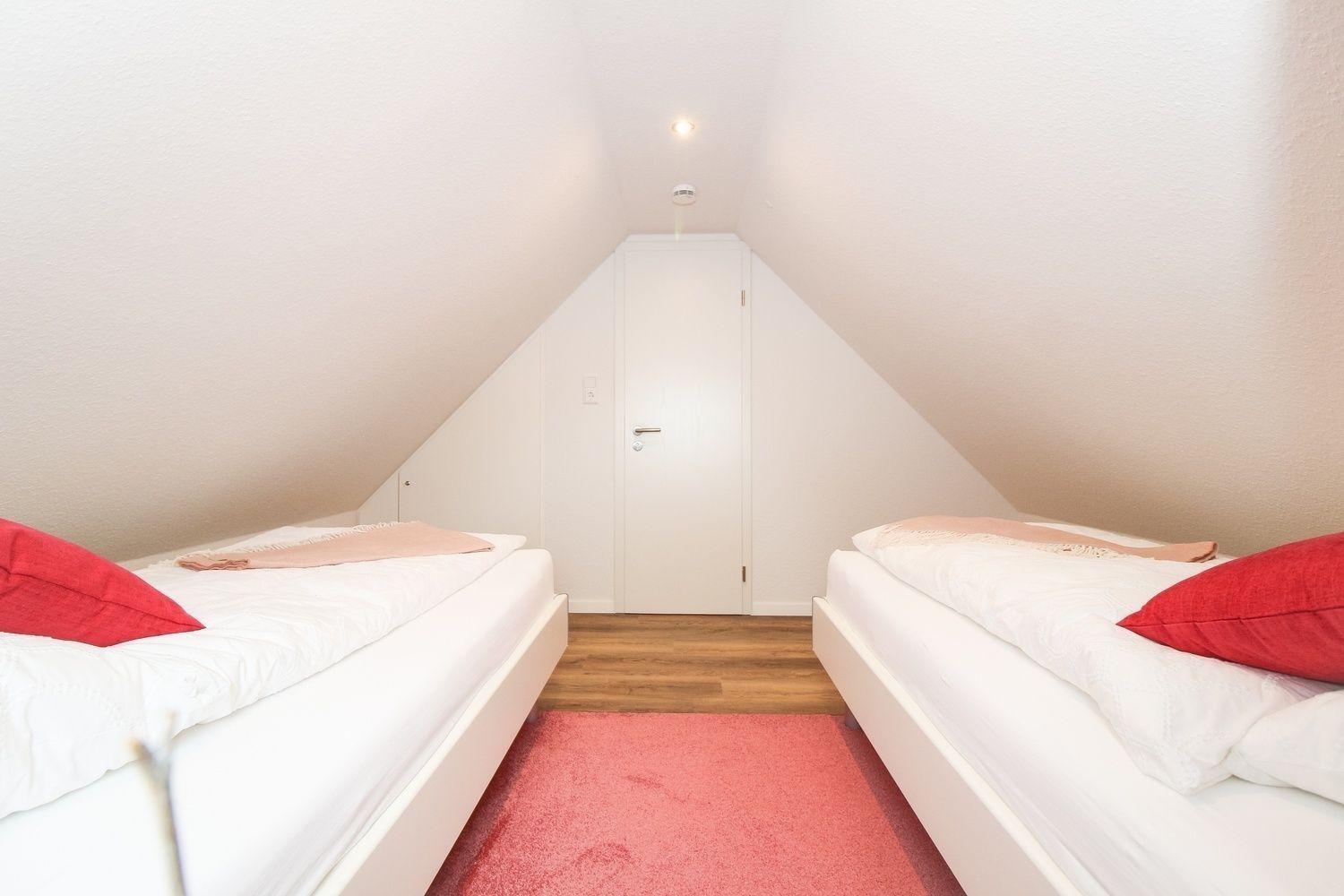 Das dritte Schlafzimmer befindet sich im Obergeschoss und beinhaltet zwei Einzelbetten.