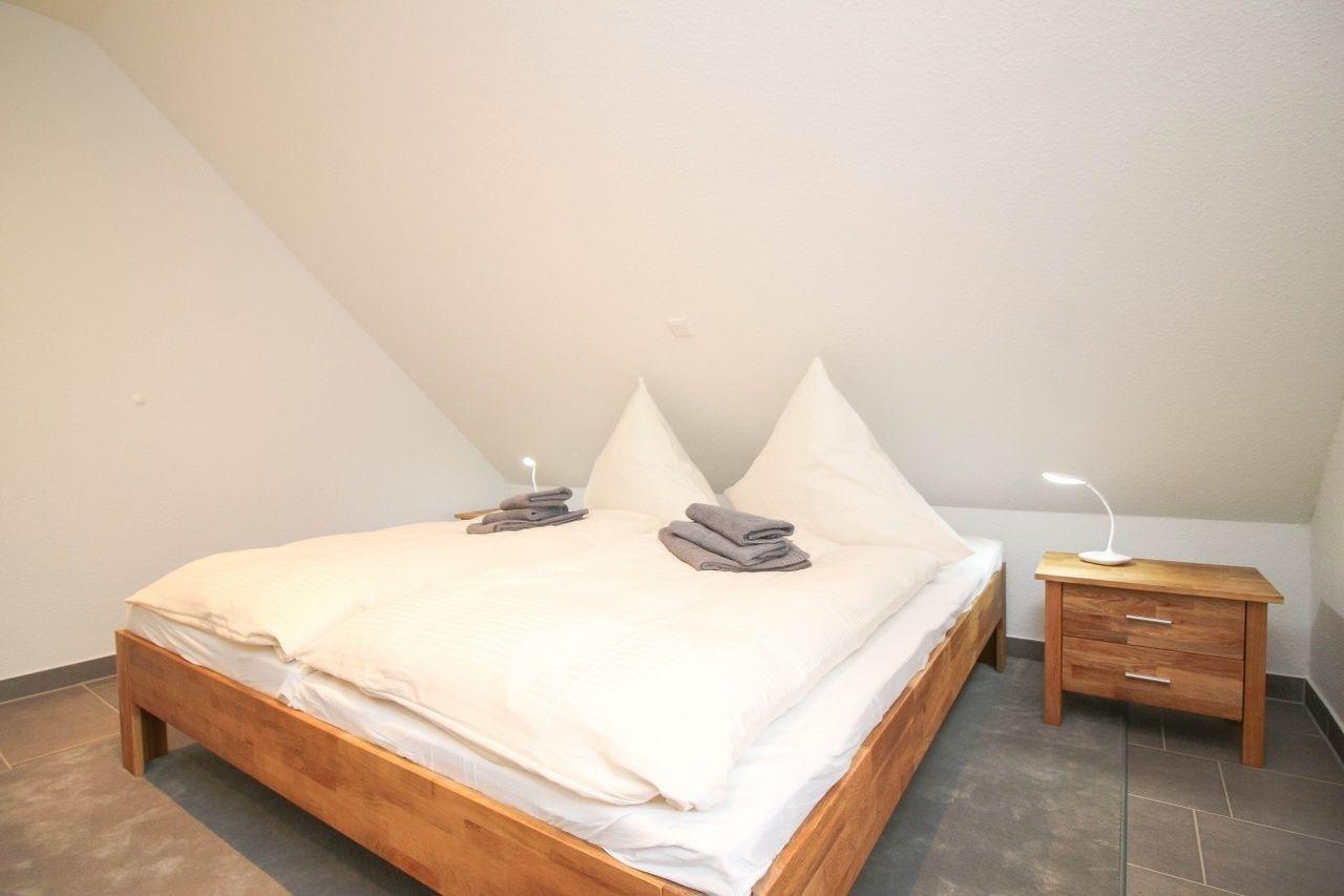 Die Wohnung verfügt über eine großzügige Wohnküche mit Essbereich und großer Sofalandschaft. Zwei Schlafzimmer mit Doppelbett, sowie das Bad befinden sich auf gleiche Ebene. Das dritte Schlafzimmer mit zwei Einzelbetten befindet sich im Obergeschoss.