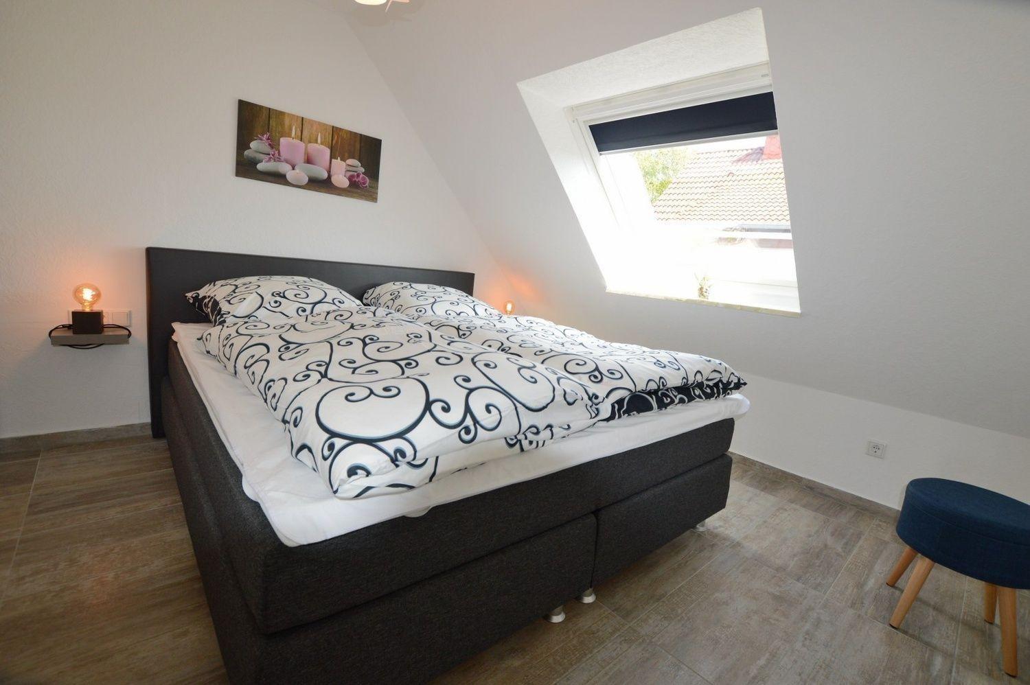 Im Schlafzimmer finden Sie ein gemütliches Boxspringbett (180 cm x 200 cm) vor und im Kleiderschrank können Sie Ihre Wäsche ordentlich unterbringen. Das Zimmer lässt sich mit einem Verdunklungsrollo abdunkeln.