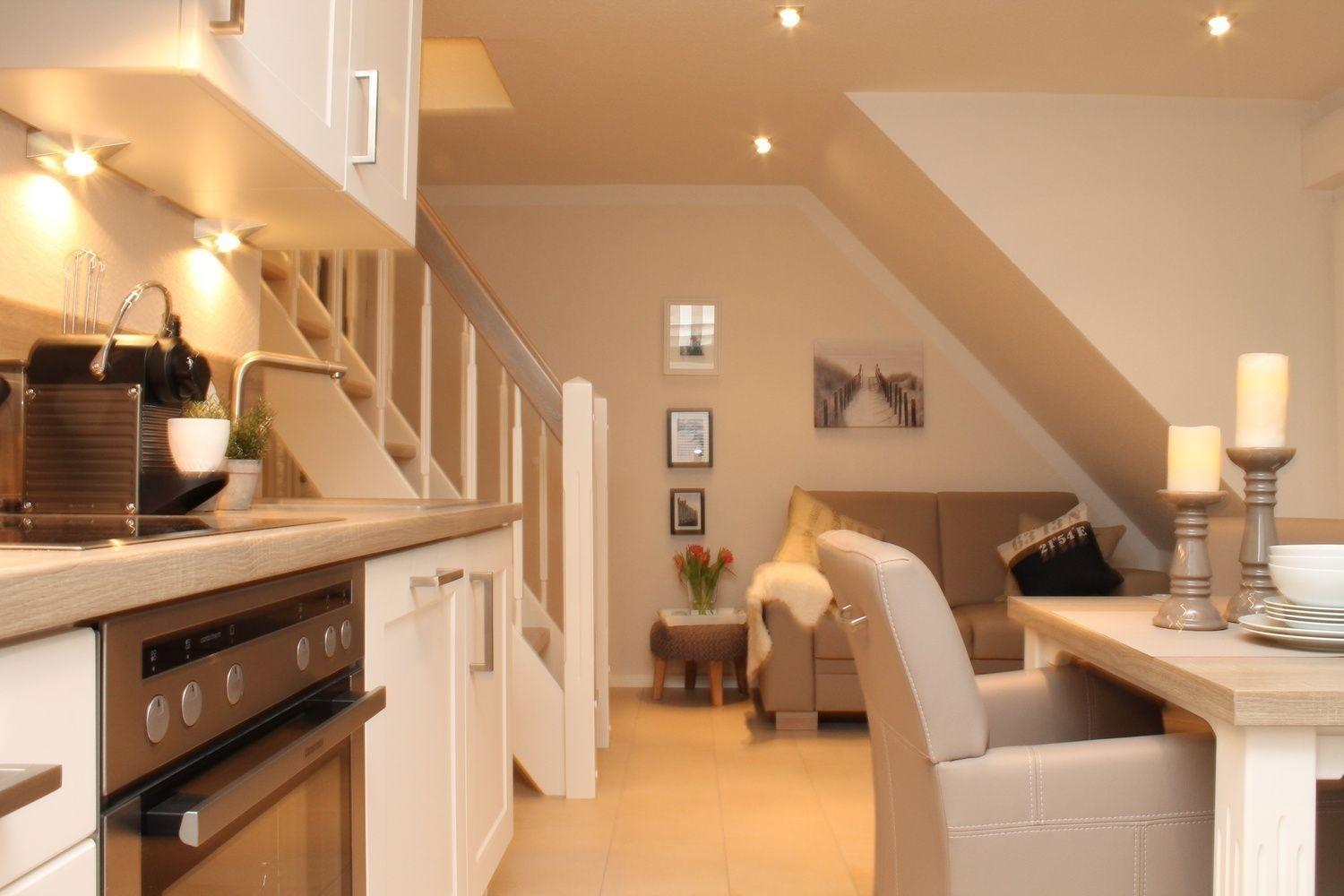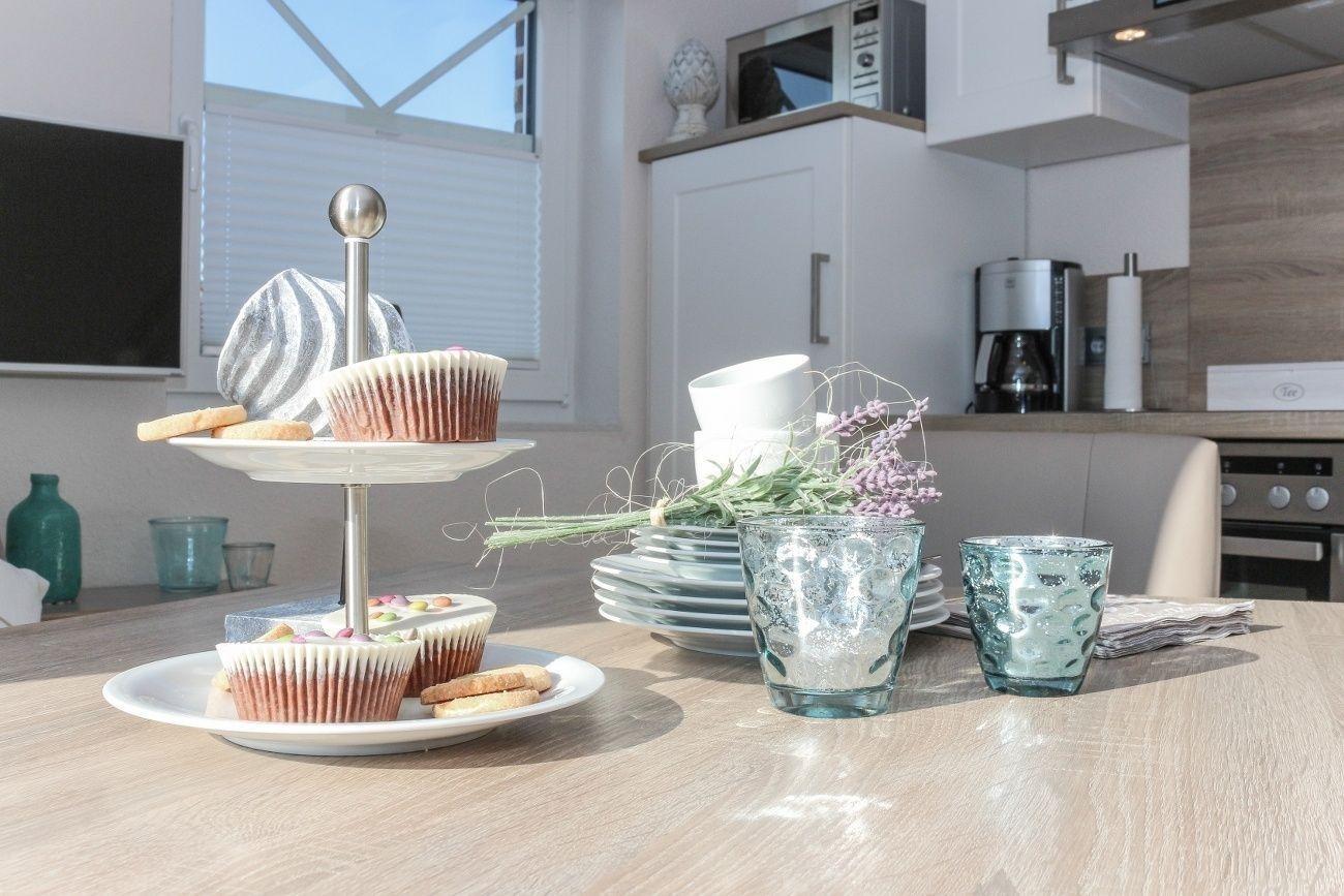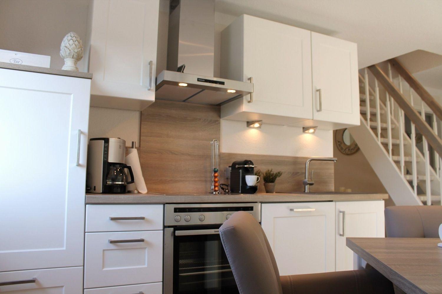 In der hochmodernen Küche wird der Kochkunst keine Grenzen gesetzt, da Ceranfeld und Umluftbackofen, Mikrowelle mit Sonderfunktionen, Kaffeemaschine, Marken-Geschirr und hochwertige Kochutensilien vorhanden sind. Für den morgendlichen Kaffeegenuss ist eine Nespressomaschine mit 15 kostenlosen Kapseln verschiedener Nespressosorten vorhanden. Diesen können Sie dann an der Essgruppe in den sehr bequemen Sesseln einnehmen.
