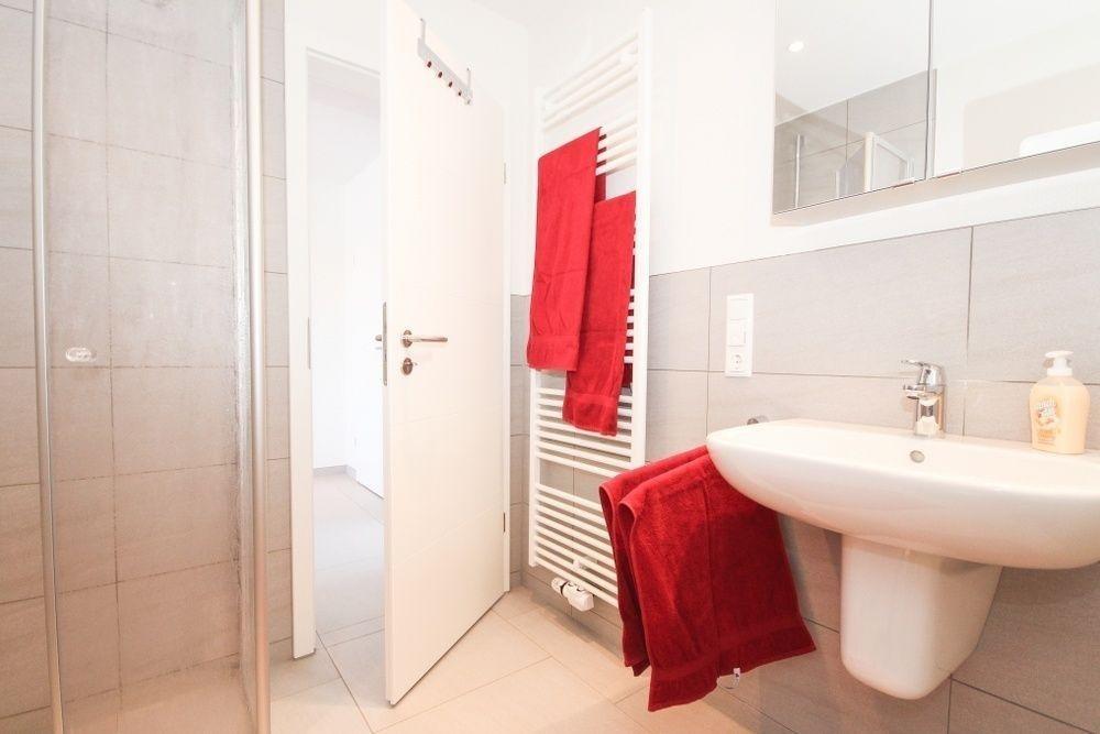 Wir heissen Sie herzlich willkommen in der Strandzeit II, einer modernen und eleganten Wohnung mit ca 62 qm Wohnfläche. Das rote Ledersofa mit Sessel erwartet Sie schon für gemütliche Abendstunden. Für die Unterhaltung sorgen ein Flachbildschirm-TV, ein Blue ray-Player und eine Musikanlage mit CD und Dockingstation für iPod und iPhone.