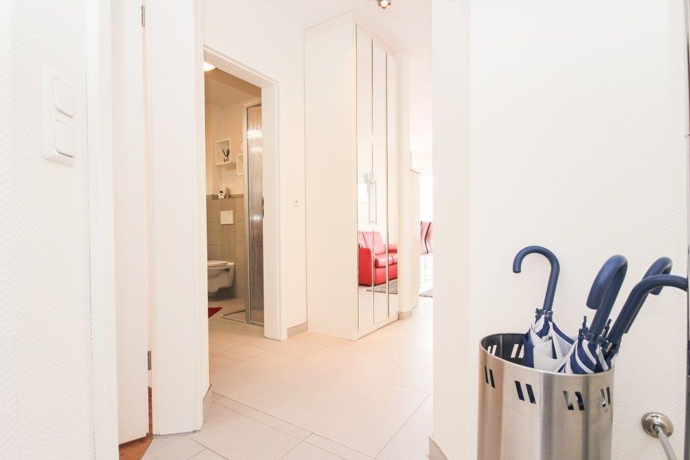 Die Wohnung setzt mit grau und rot Tönen moderne Akzente. Die schöne Couch im Wohnbereich lässt Sie den Abend gemütlich ausklingen. Ein Flachbildfernseher, Blue-ray Player sowie ein Radio/CD-Player mit Docstation für iPod und iPhone stehen zur Unterhaltung zur Verfügung. Ein W-Lan Anschluss ist vorhanden.