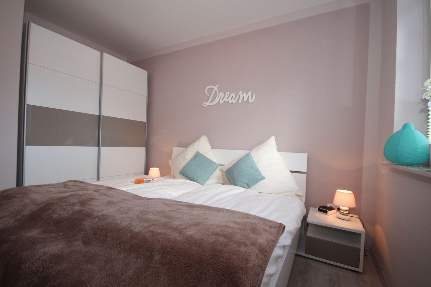 Auch in den zwei Schlafzimmern wurde mit zarten Pastell-Farbtönen gearbeitet. Im ersten Schlafzimmer befinden sich ein Kleiderschrank, ein Doppelbett (1,80 m x 2,00 m) mit 7-Zonen-Kaltschaummatratze und Federkissen. Das zweite Schlafzimmer beinhaltet ein Doppelbett (1,60 m x 2,00 m), eine Kommode und zwei Nachtschränke.