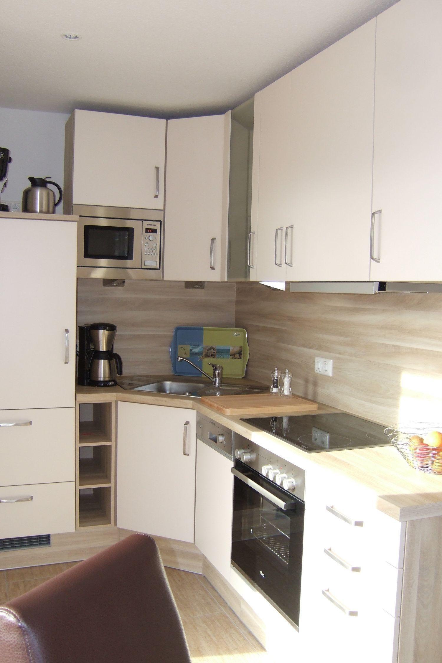 Die offen gestaltete und modern eingerichtete Einbauküche mit Backofen, Ceranfeld, Mikrowelle, Geschirrspüler,Toaster, Eierkocher, Wasserkocher, Senseo-Kaffeemaschine, Kühlschrank mit 4-Sterne Gefrierfach, Pürierstab, Mixer, Gewürzen sowie ausreichend Geschirr ist mehr als gut ausgestattet.
