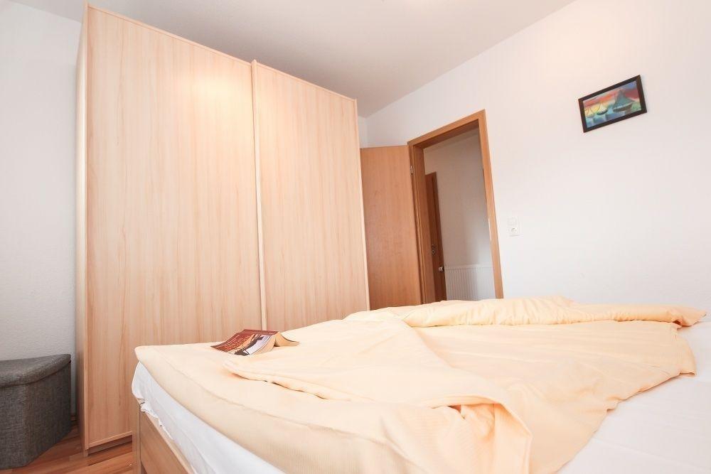 Schöne Träume haben sie in dem Schlafzimmer mit Doppelbett ( 1,80 x 2,00m), Nachtschränken und einem Kleiderschrank.