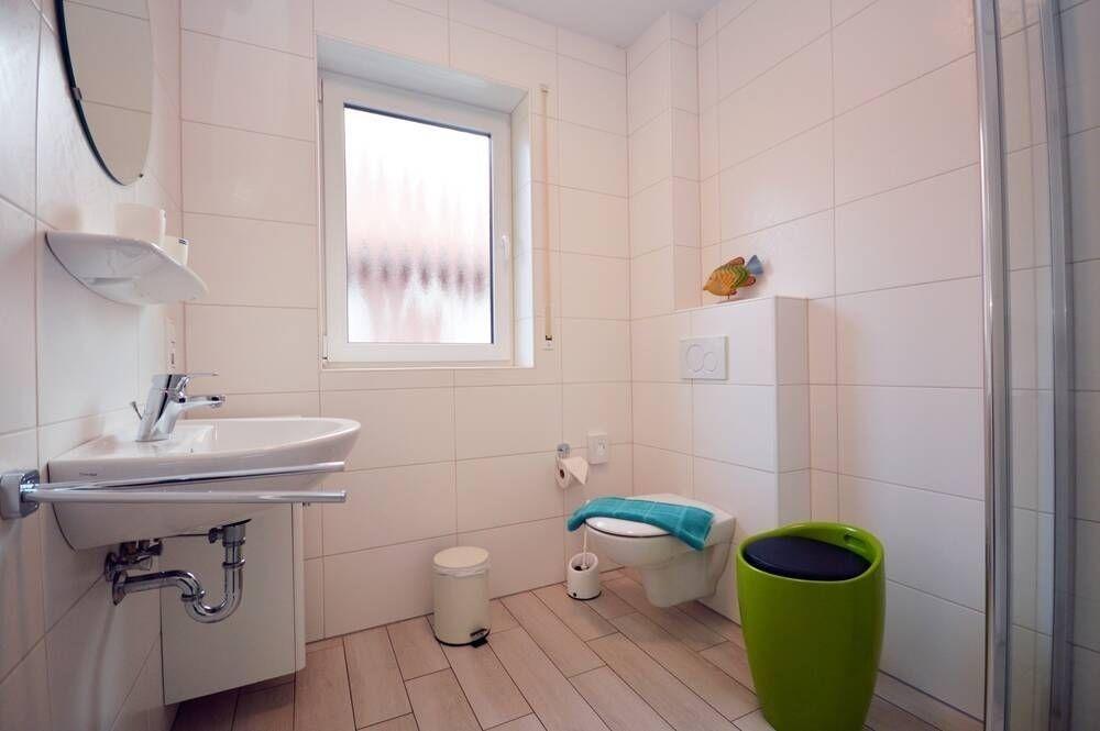 Im Bad haben Sie eine begehbare Dusche, ein Waschbecken sowie eine Toilette um hier frisch in den Tag zu starten.