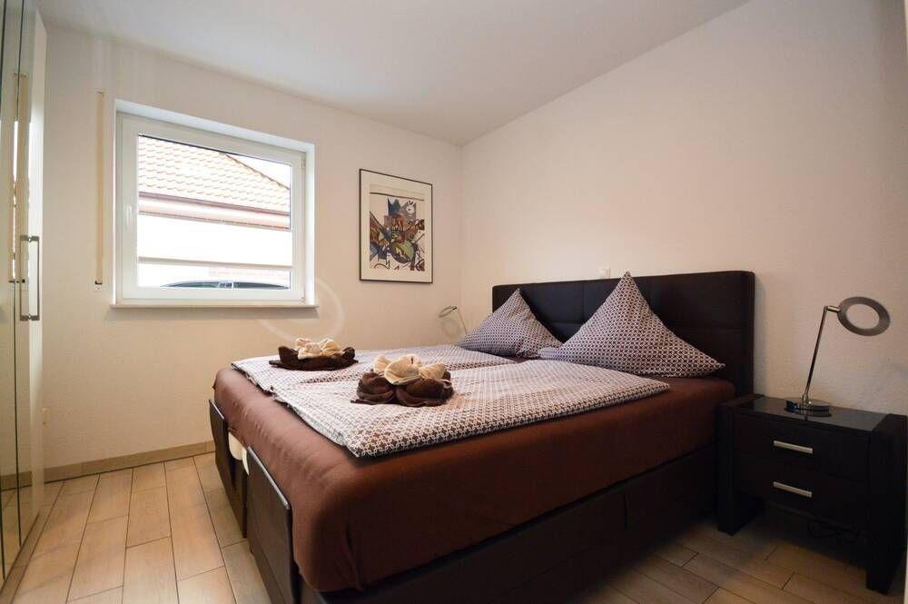 Im Schlafzimmer erwartet Sie ein Boxspringbett mit großen (155 x 220 cm) Decken, damit auch die Nacht zur Erholung wird. Der Kleiderschrank bietet genügend Platz für die mitgebrachte Wäsche.
