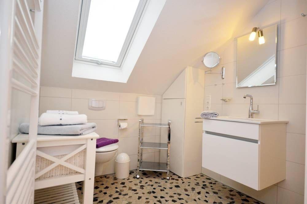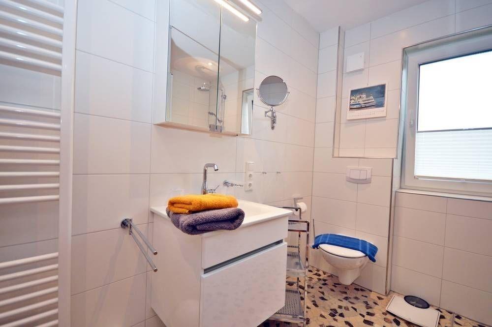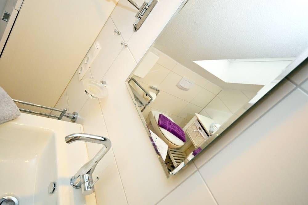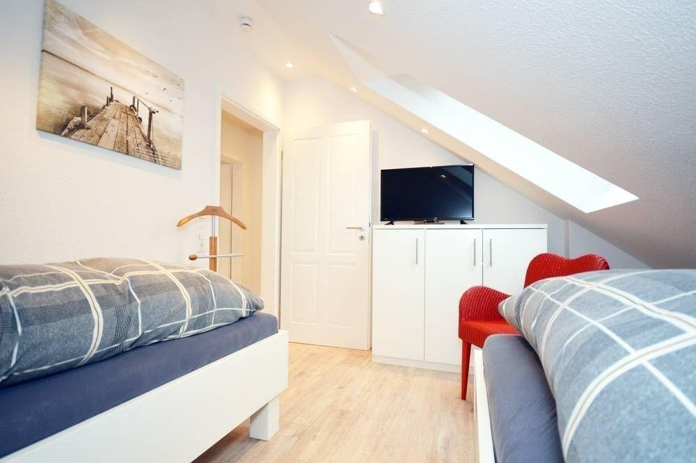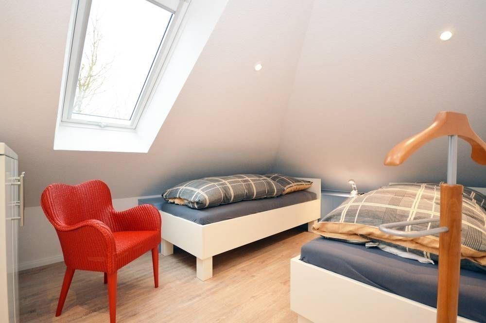 Im OG sind zwei weitere Schlafzimmer; jeweils mit Einzelbetten und einem weiteren Duschbad.