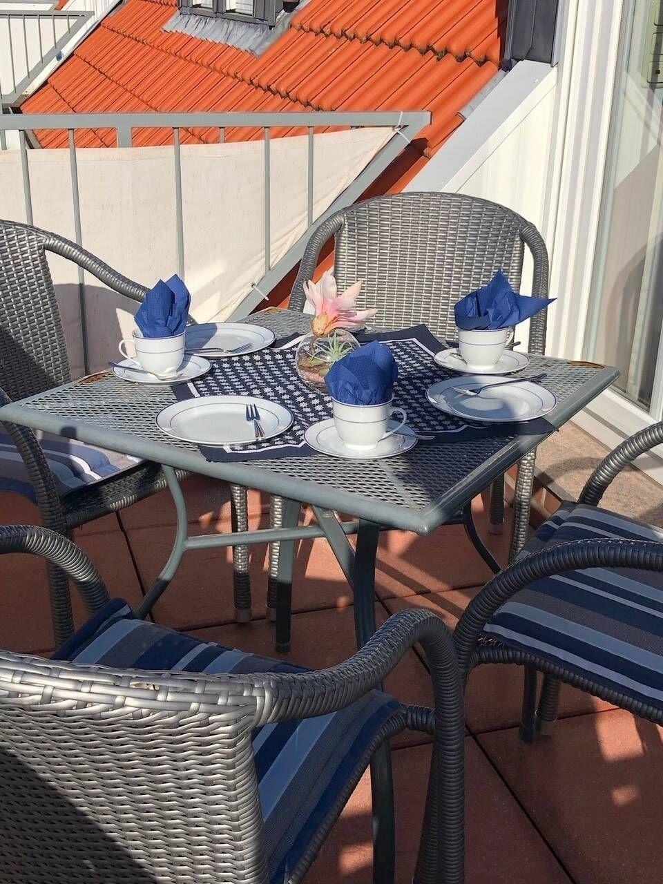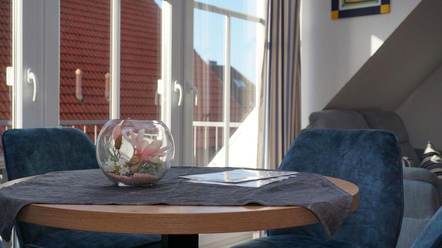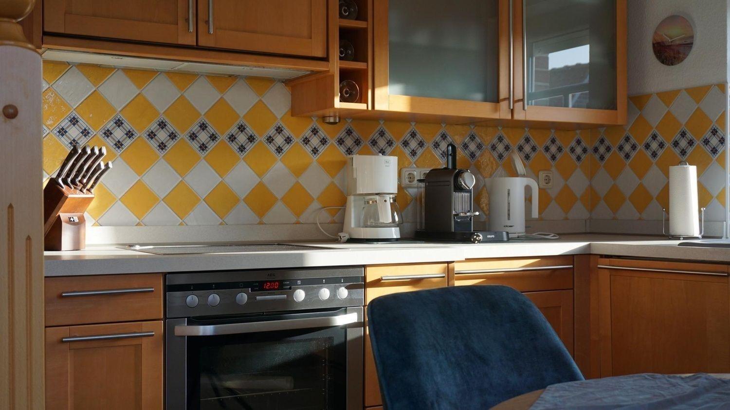In der gut ausgestattete Küche, lassen sich Mahlzeiten zubereiten, die dann am Esstisch zu sich genommen werden können, oder auf dem möblierten Balkon in Süd-Westrichtung.