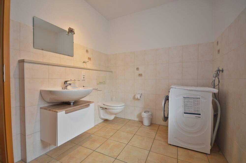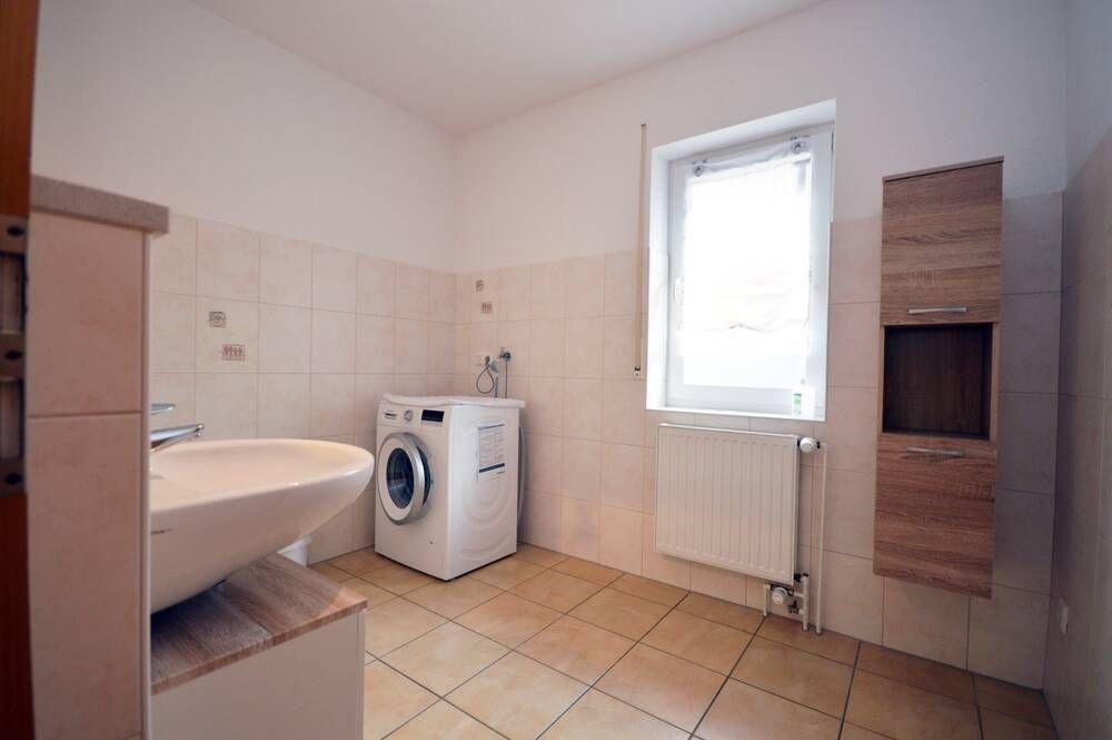 im EG; Tageslicht-Badezimmer - hier steht die Waschmaschine