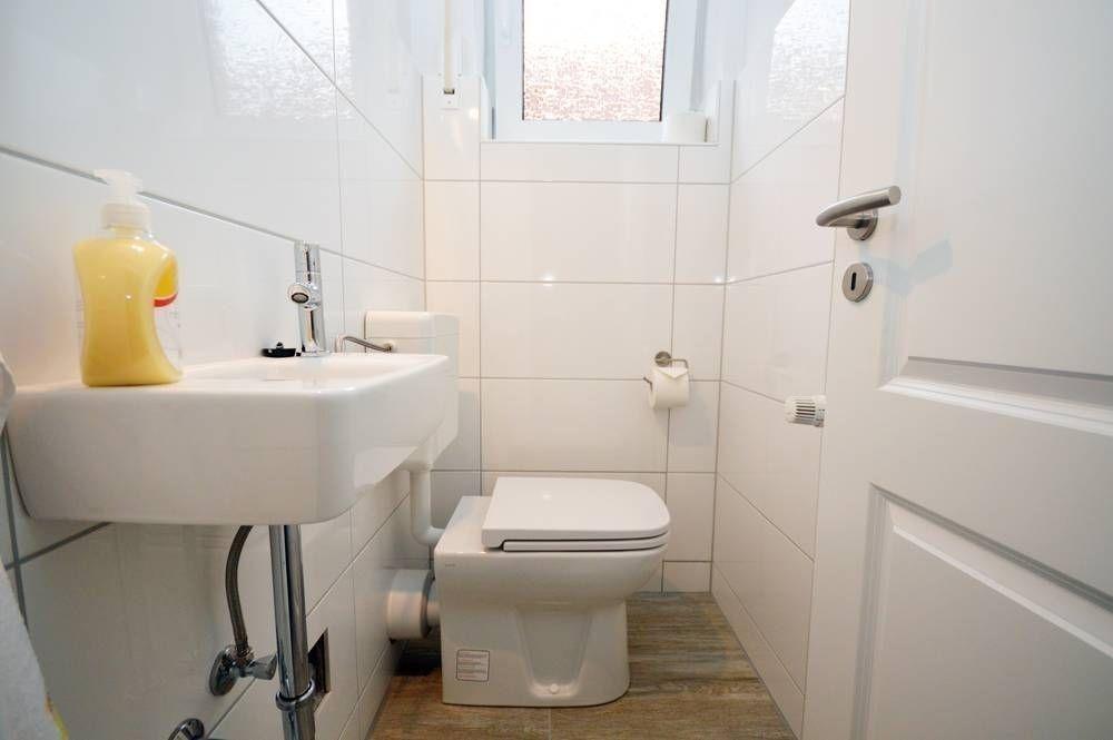 Weiterhin befinden sich im Erdgeschoss die Diele mit Garderobe sowie das Gäste-WC.