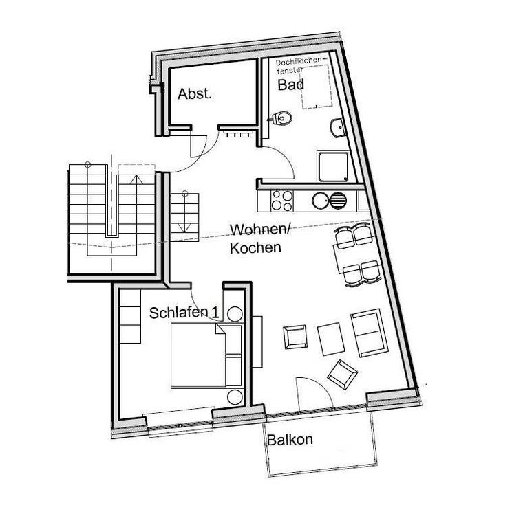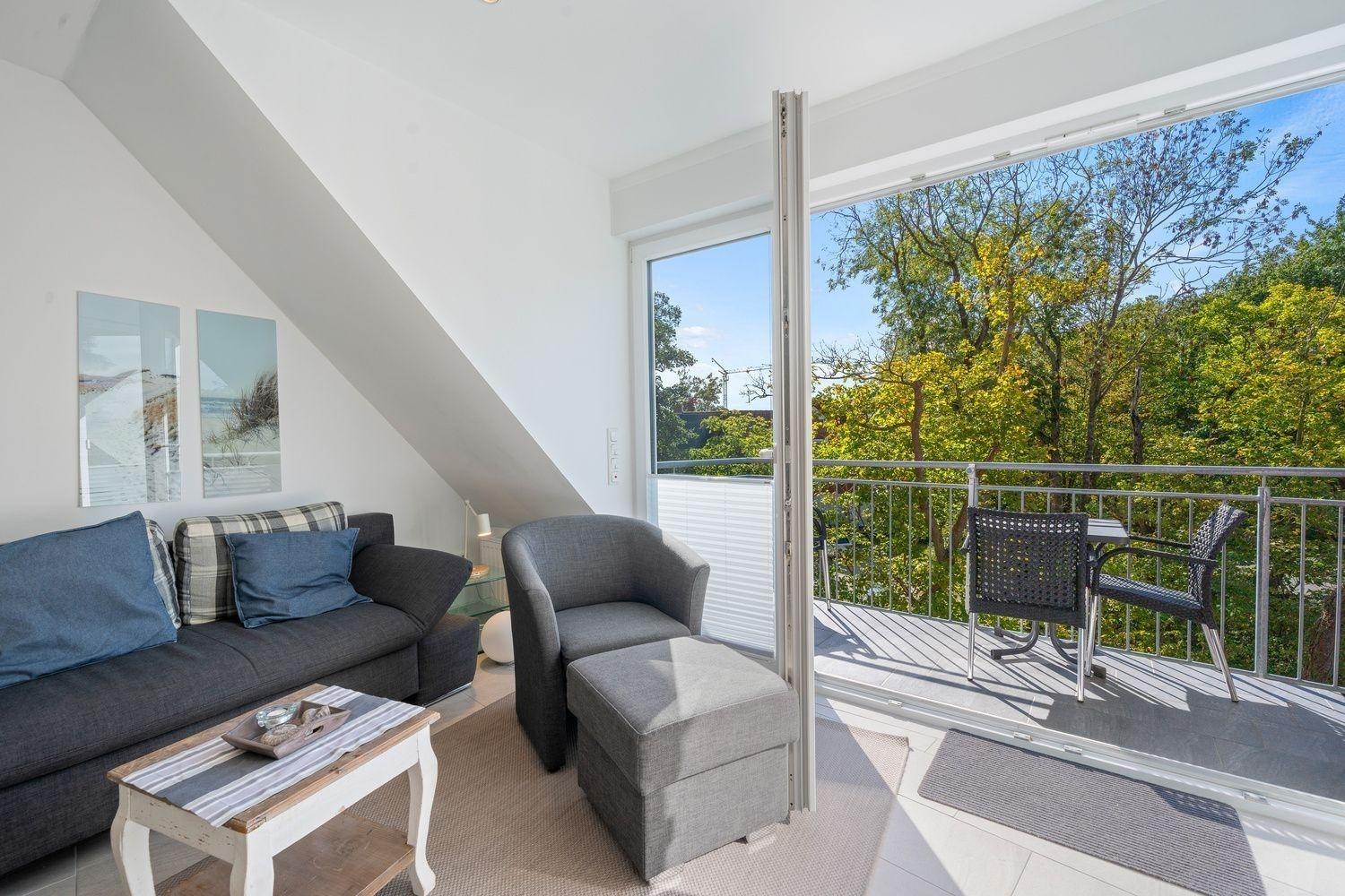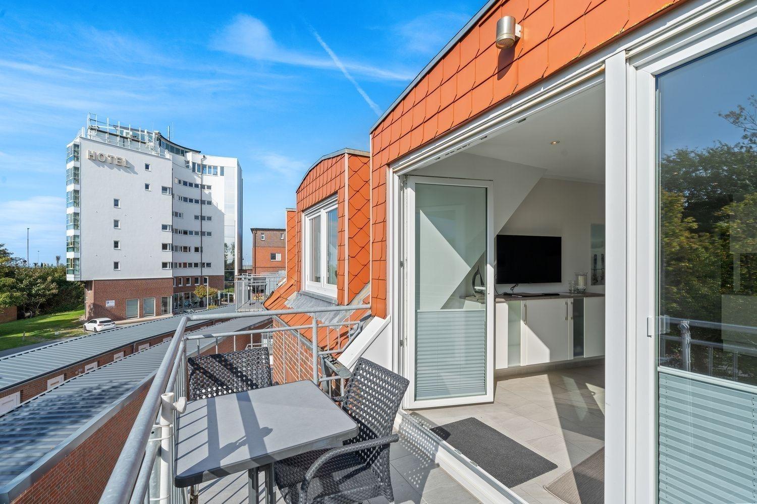 Der Balkon in Südlage lädt mit einer gemütlichen Sitzgarnitur zum Relaxen und Sonnen ein.