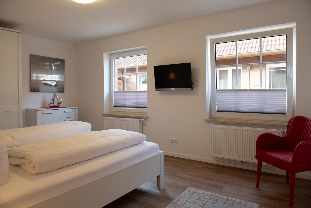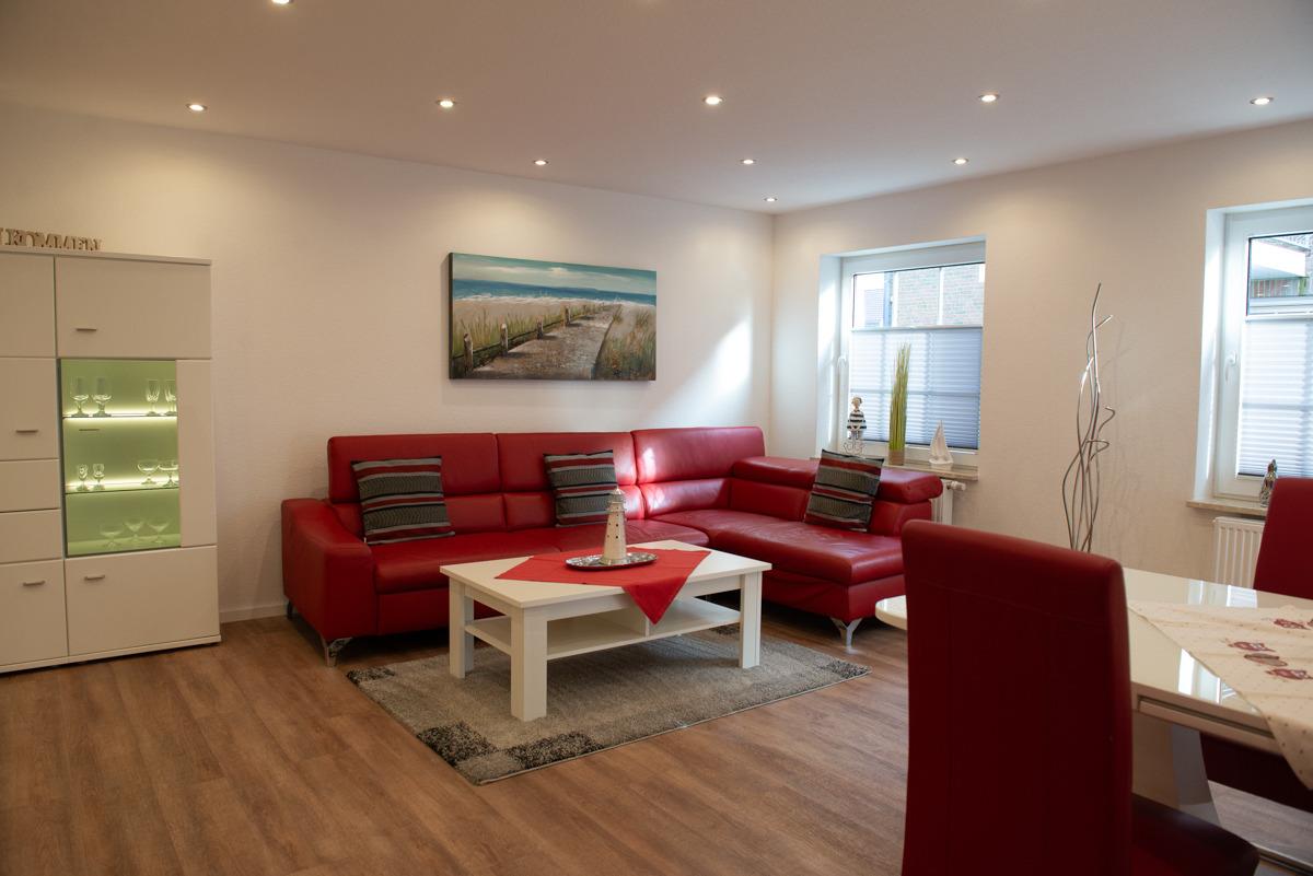 Moderne - sehr zentral gelegene Ferienwohnung - direkt in Norddeich . Die Wohnung verfügt über ein Schlafzimmer mit Doppelbett und mit Fernseher im Schlafzimmer. Das große Wohn- und Esszimmer ist kompl. ausgestattet, von hier aus gelangt man auf die möblierte Terrasse.