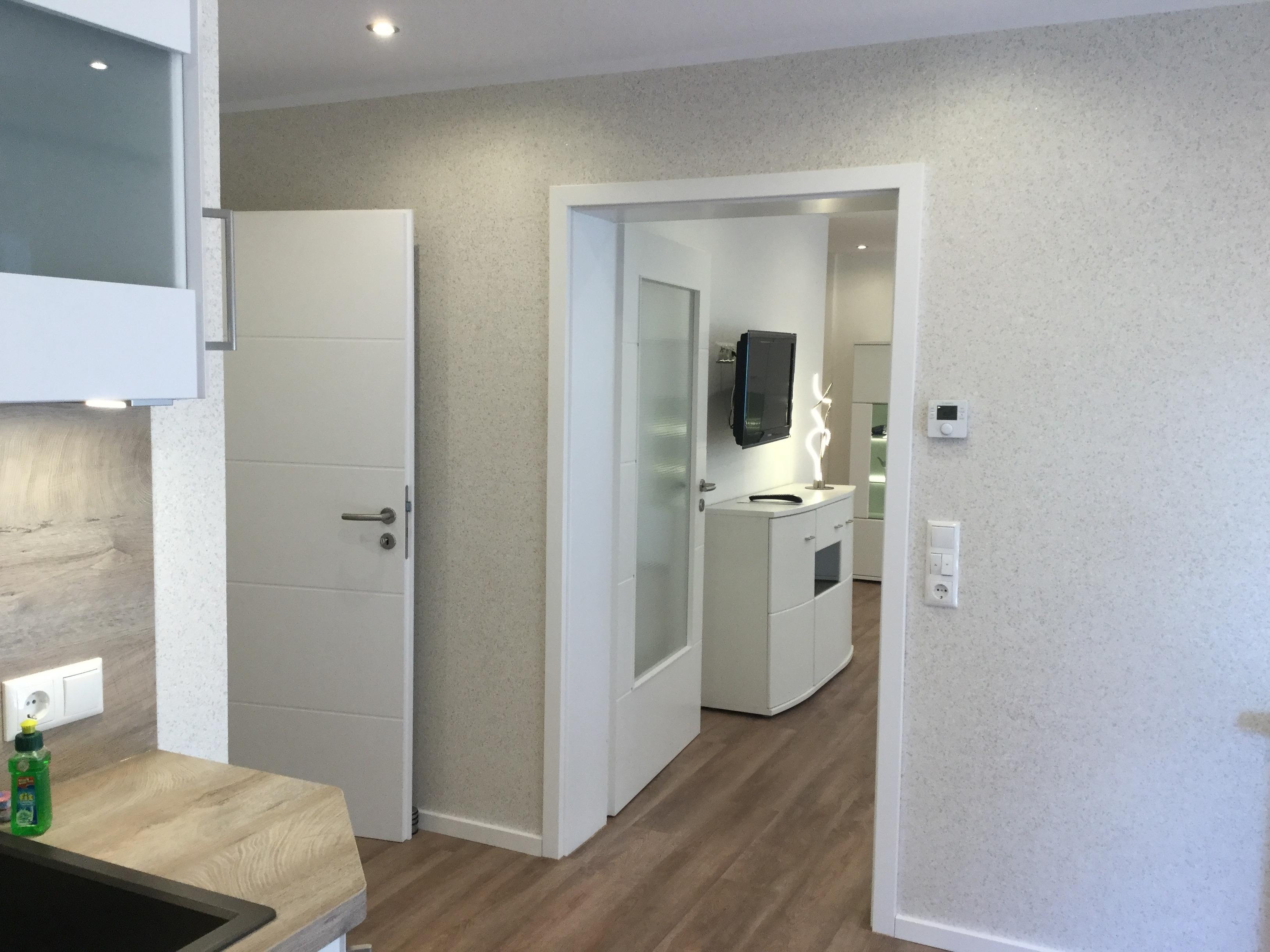 Von der kompl. ausgestatteten Einbauküche gelangt man ebenfalls auf die Terrasse, auch hier befindet sich eine kleine Stufe.