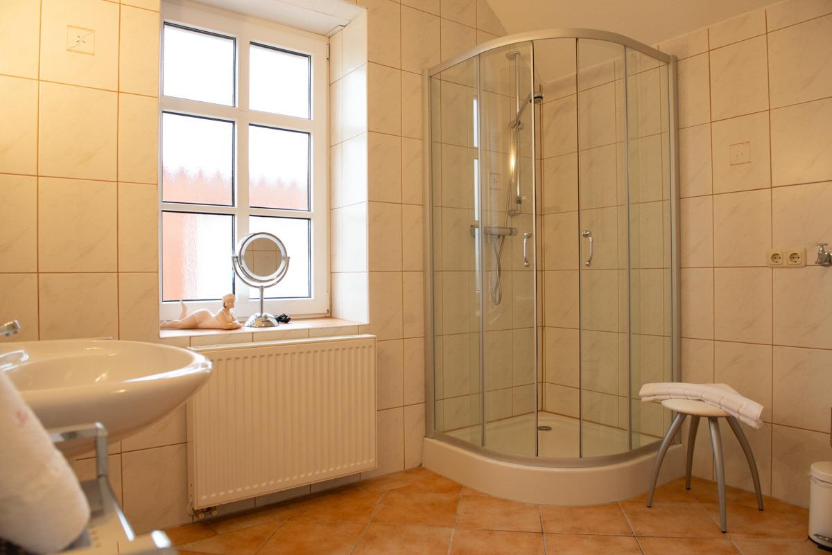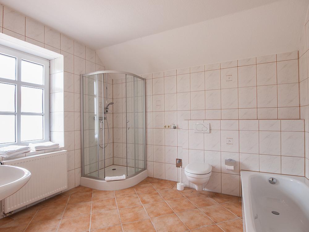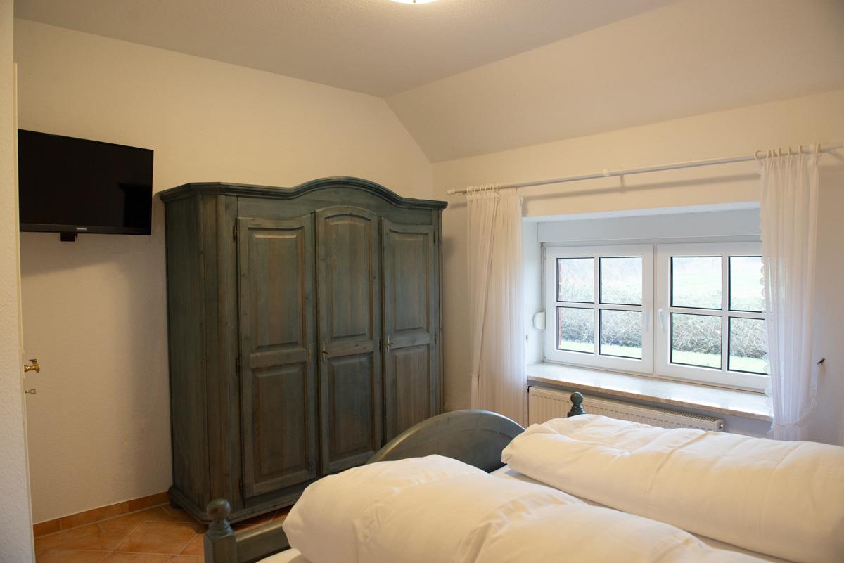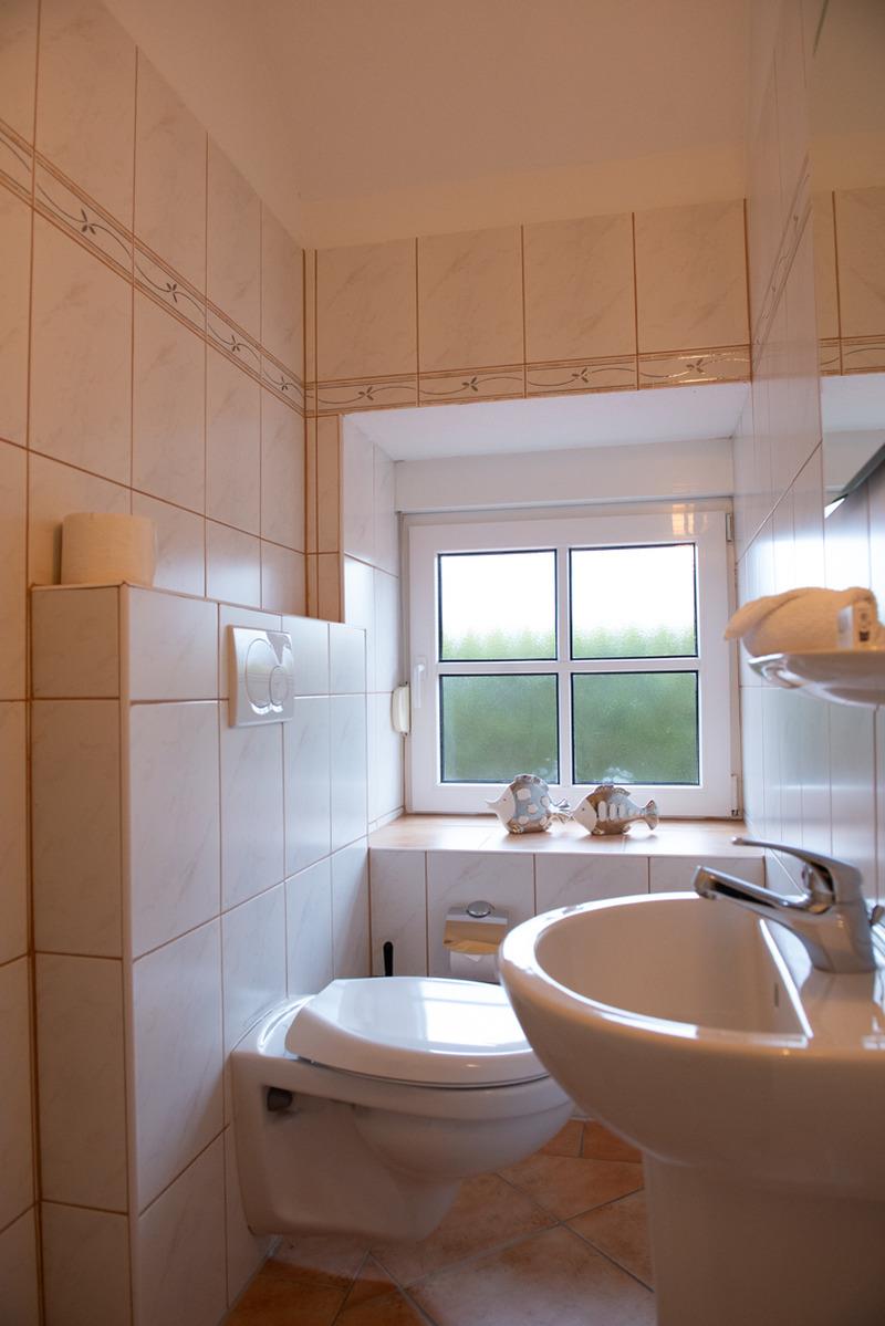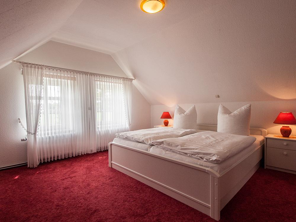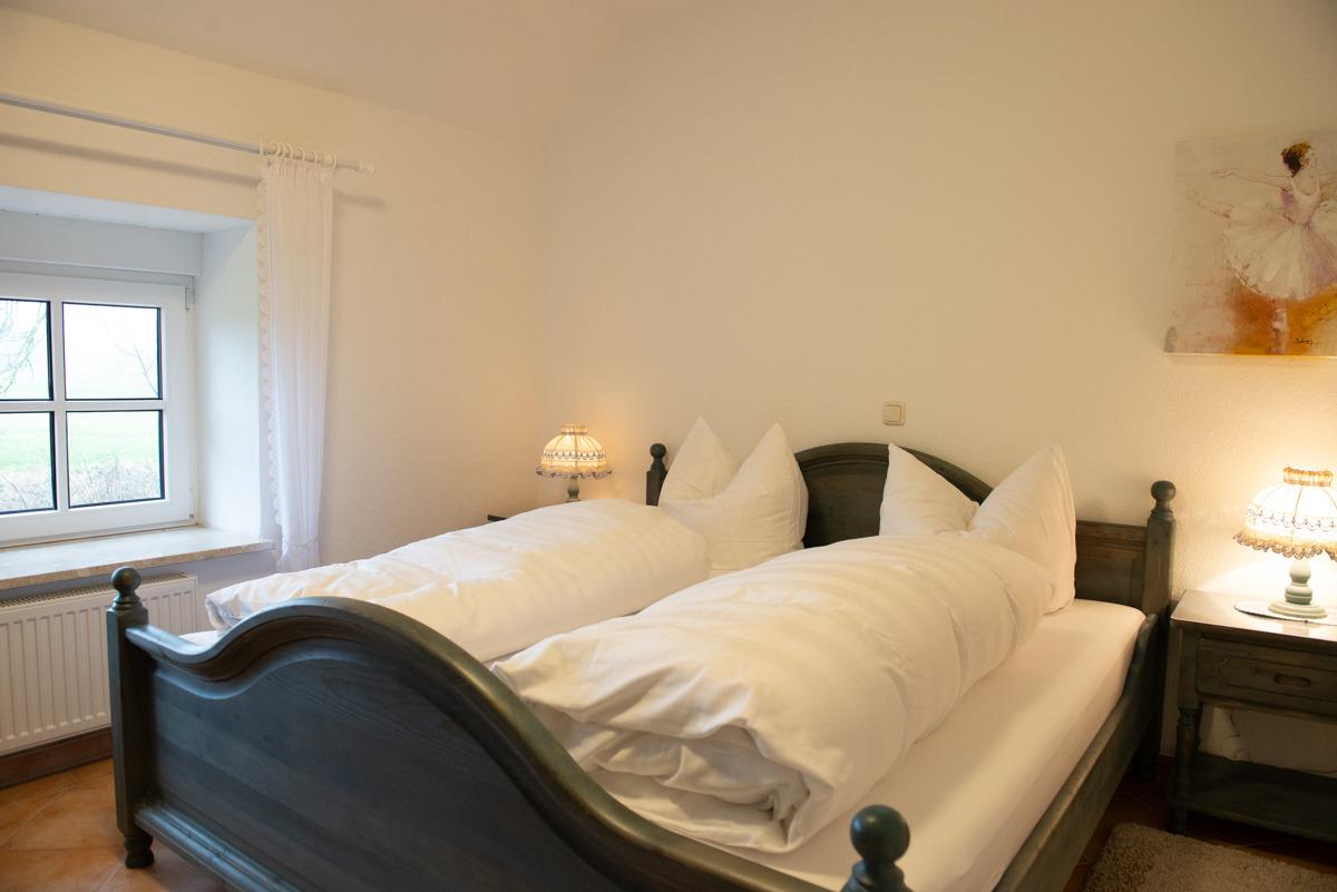 Das Ferienhaus ist mit zwei Schlafzimmern ausgestattet. Ein Schlafzimmer mit SAT-TV und Außenrolladen im EG, das 2. Schlafzimmer im 1. OG mit Verdunklungsplissees. Das große Bad im Erdgeschoss verfügt über eine Dusche und WC. Ein zusätzliches WC ist ebenfalls im Erdgeschoss untergebracht.