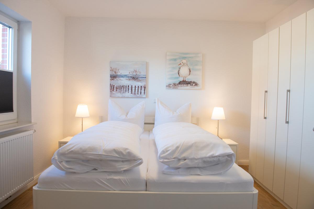 Die gesamte Ferienwohnung ist hochwertig ausgestattet, ein Schlafzimmer mit einem Doppelbett und Fernseher und das zweite Schlafzimmer mit einen Einzelbett.