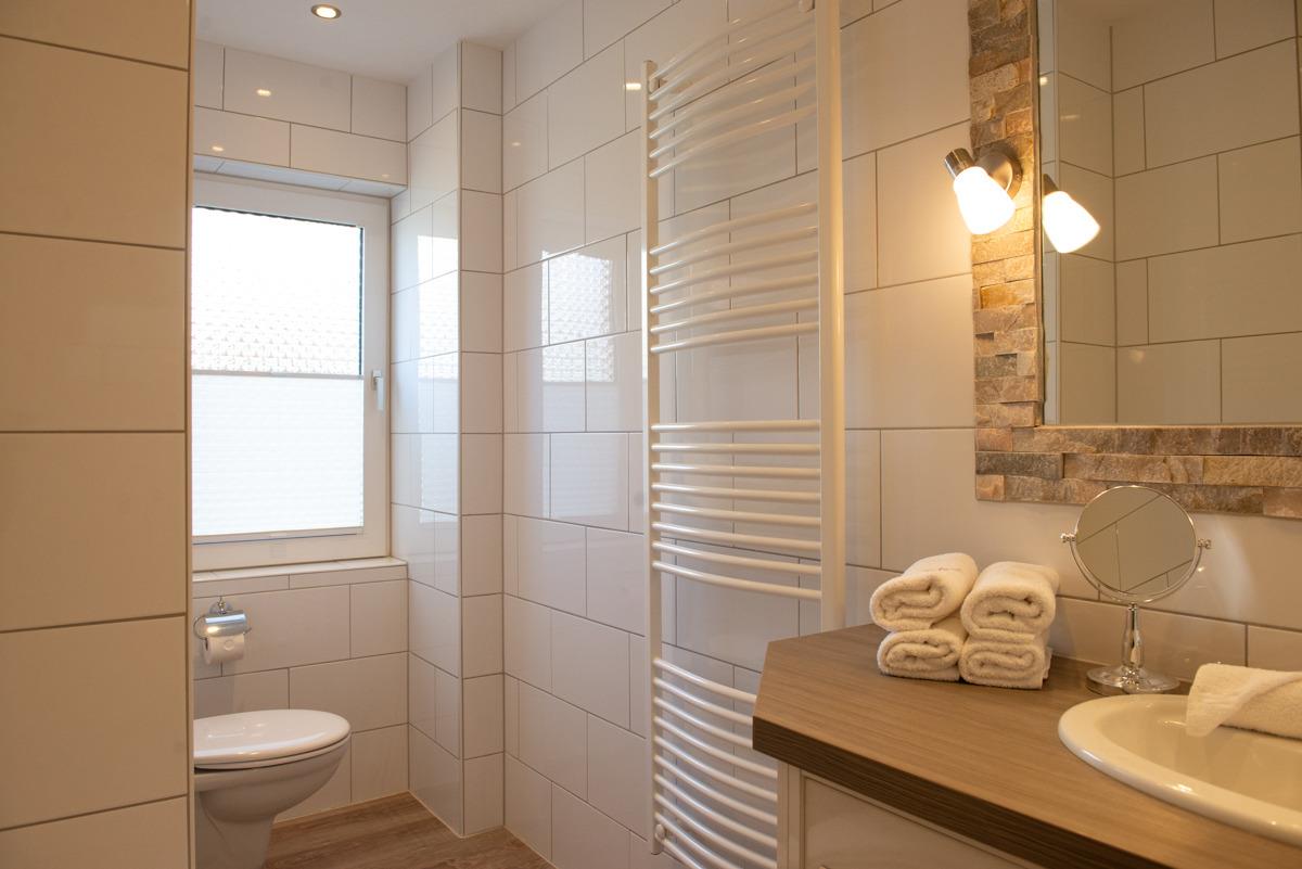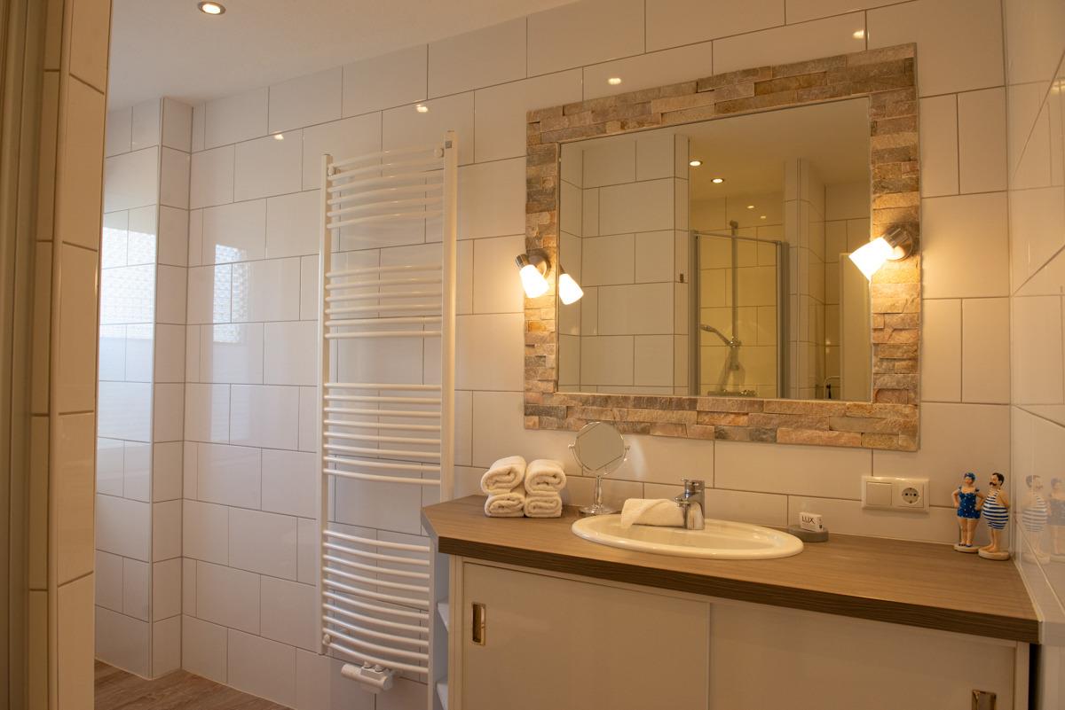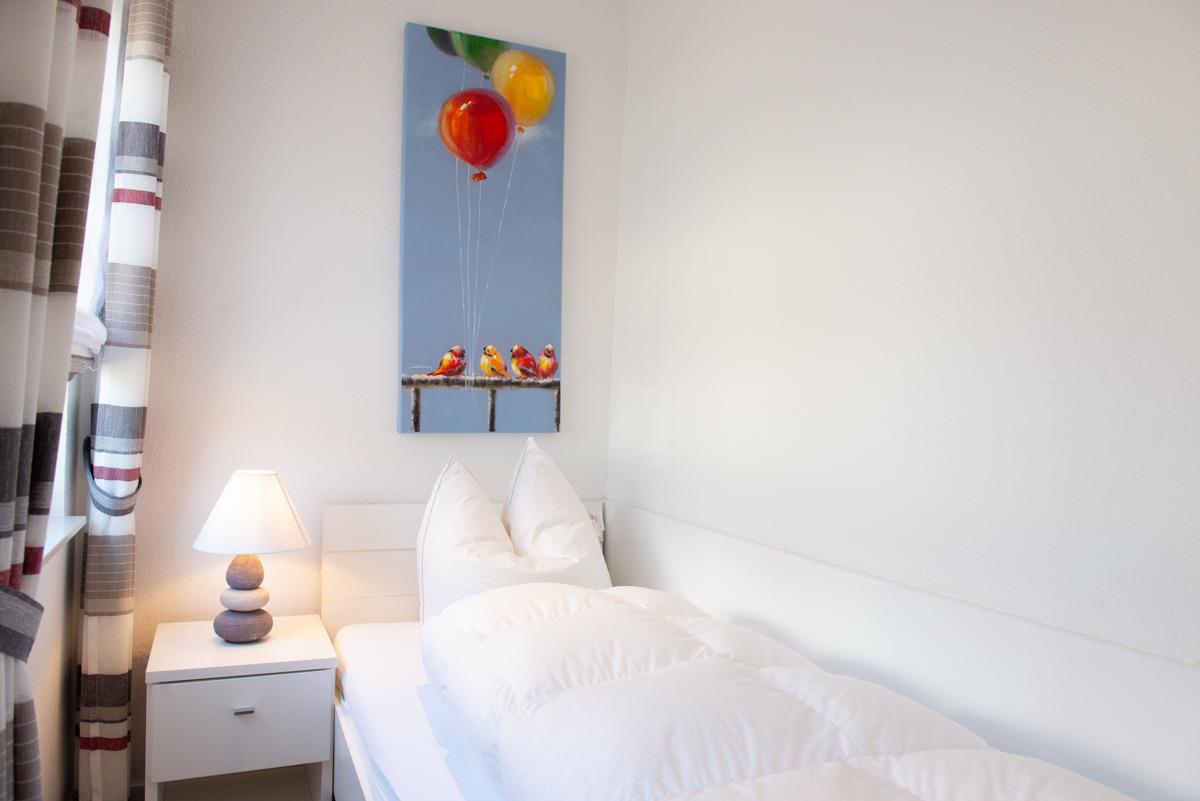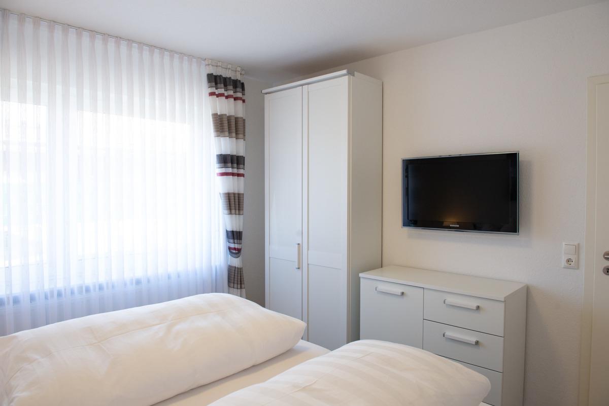 Die Ferienwohnung Cutty Sark liegt im Erdgeschoss und verfügt über zwei getrennte Schlafzimmer mit Außenrollläden, davon ist ein Schlafzimmer mit einem TV-Sat Flachbildschirm ausgestattet. Das moderne Bad/WC ist mit einem Fenster, einer bodenebenen Dusche und einem Handtuchhalter - Heizungskörper ausgestattet.