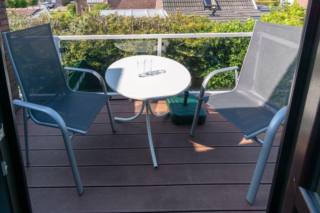 Direkt vom Wohnbereich führt eine Tür hinaus auf den Balkon mit südwestlicher Richtung. In der gemütlichen Sitzgruppe lassen sich sonnige, warme Tage bis in den Abend hinein genießen.