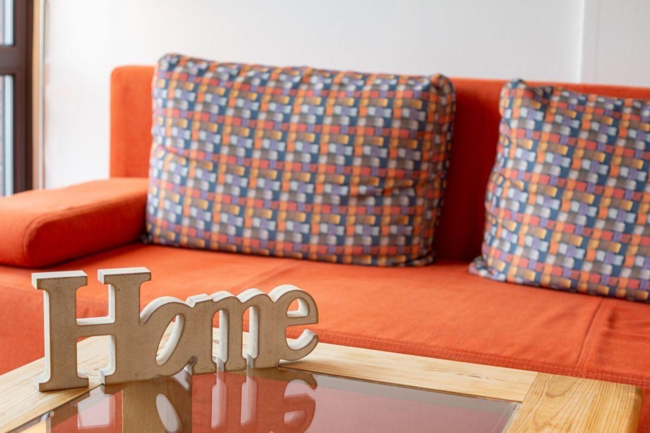 Abends können es sich die Gäste im Wohnbereich gemütlich machen. Dazu verfügt die Ferienwohnung über eine bequeme 2-Sitzer-Couch mit Couchtischchen. Fernseher und Anlage sind selbstverständlich vorhanden, so dass Sie sich auf den ein oder anderen TV-Abend freuen dürfen.
