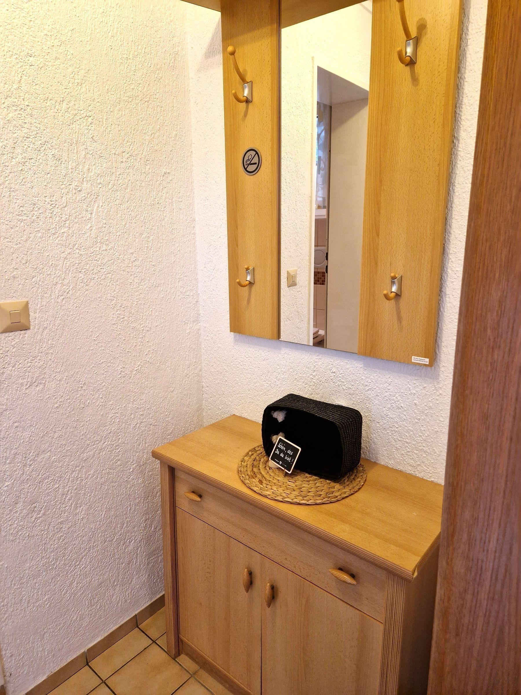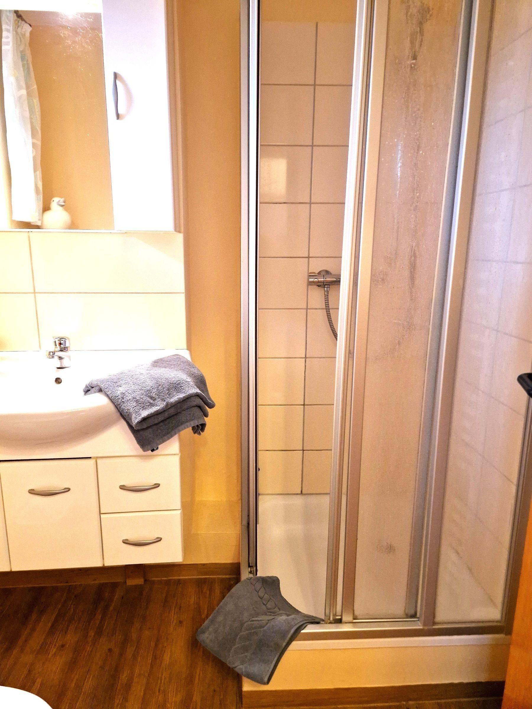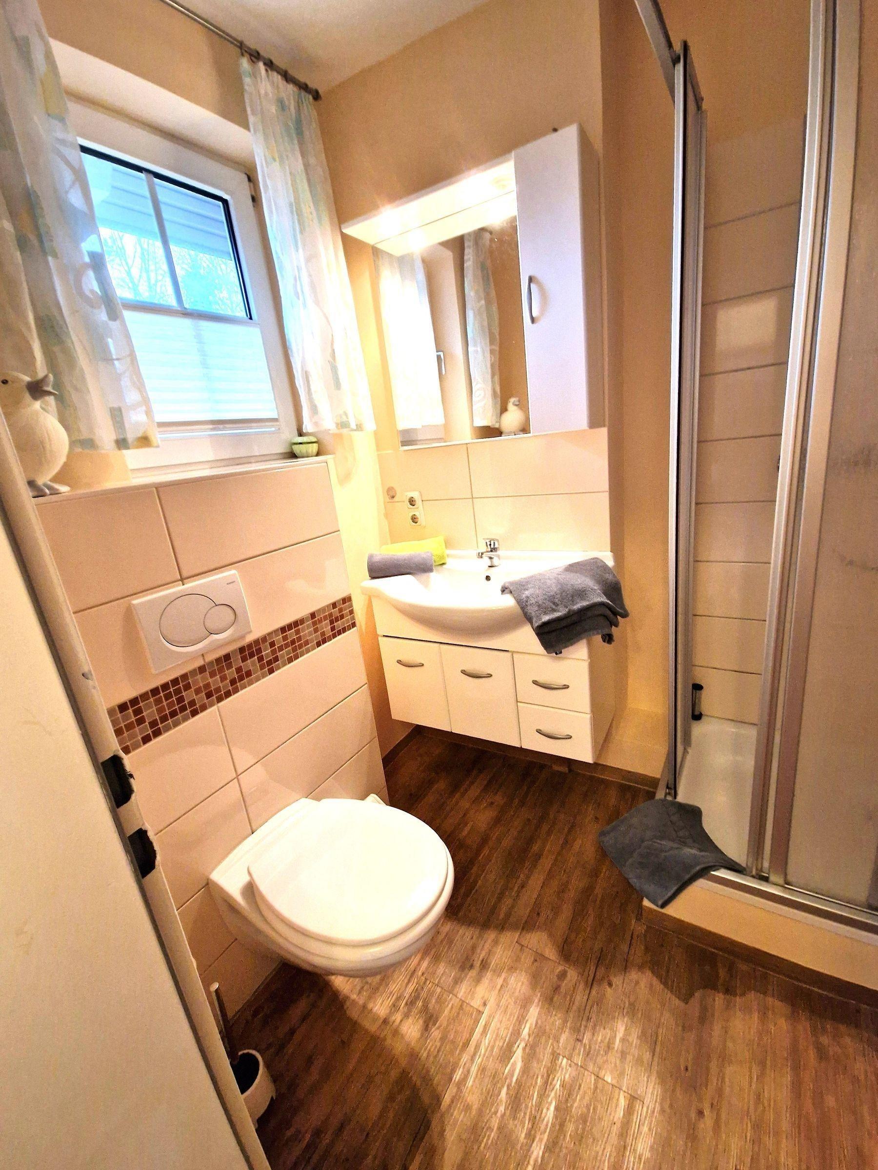 Im Badezimmer, das mit einem Fenster und einem Spiegel ausgestattet ist, kann man sich nach einem langen Tag erfrischen. WLAN-Internet sorgt für eine unkomplizierte Verbindung. Zur zusätzlichen Ausstattung zählen ein TV, eine Heizung und eine Garderobe. Ein Parkplatz steht ebenfalls zur Verfügung. Die Ferienwohnung ist der ideale Ort für einen unvergesslichen Aufenthalt.