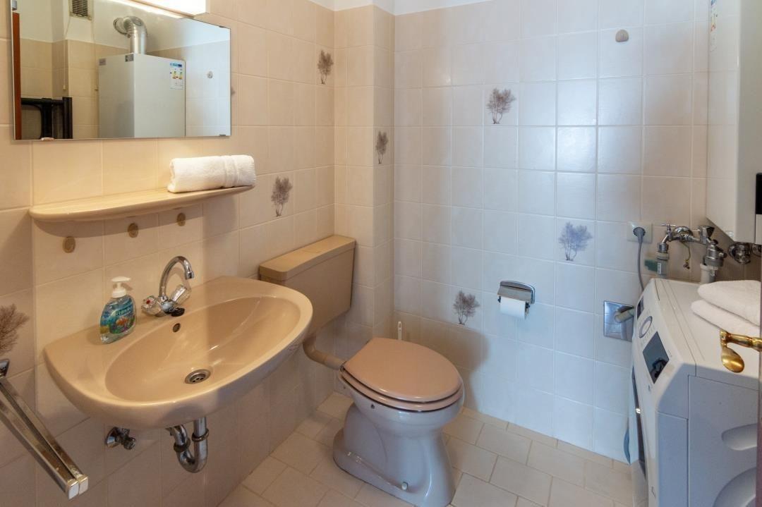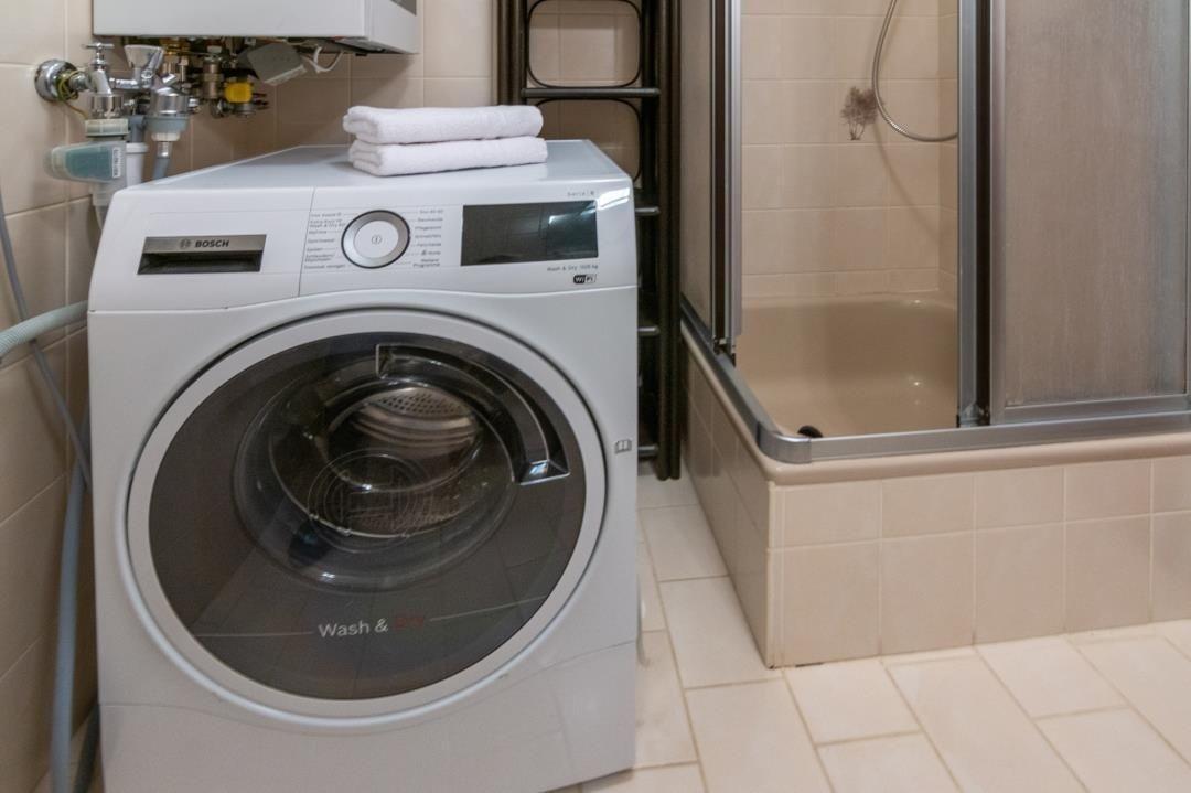 Das Badezimmer ist praktisch eingerichtet und verfügt über eine Dusche sowie eine Waschmaschine. Die Einrichtung ist funktional und komfortabel, ideal für einen angenehmen Aufenthalt. Die Küche ist ebenfalls modern und gut ausgestattet. Sie verfügt über alles, was man zum Kochen und Genießen braucht, einschließlich moderner Geräte und viel Tageslicht.