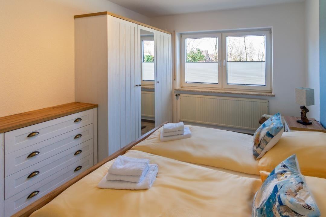 Das Schlafzimmer ist gemütlich und bietet Platz für zwei Personen. Es ist mit einem komfortablen Doppelbett ausgestattet und sorgt für erholsame Nächte.