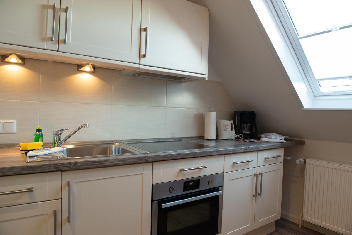 Die Ferienwohnung Santa Maria liegt im 2. OG und verfügt über zwei getrennte Schlafzimmer, die mit Veluxfenstern + Verdunklungs - Plissees ausgestattet sind. Das moderne Bad ist mit einem Veluxfenster, einer bodenebenen Dusche und einem Handtuchhalter - Heizungskörper ausgestattet. Das WC ist separat.